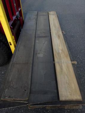 比較的汚れが少ないです。店舗の床板やこだわりの個人宅など、寸法が長いので様々な場所にお使いいただけるかと思います。写真の一番右は裏返した状態です。