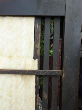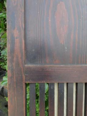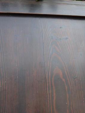 深めの色味で落ち着いた印象です。木目も模様もバランスが良いと思います。腰板が少しよれてしまっています。
