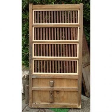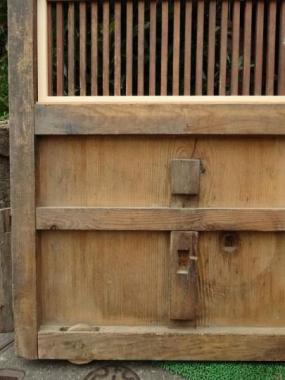 明るめの茶色です。色落ちした箇所は、木目が美しく見えます。 木材の味わいがでてきた頃合いです。 高さ1,767mm幅900mm厚み52mmです。 詳細お問い合わせください。