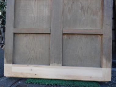 スギ材の蔵戸です。痛んでいるところをオーダーメイドで、一部補修をしました。 高さ1,795mm幅910mm厚み50mmです。 詳細お問い合わせください。 補修箇所の拡大写真は以下に掲載中です。