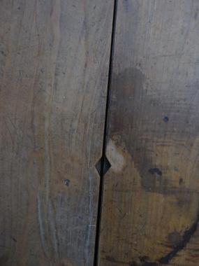 価格は7枚1組の値段です。バラ売りは、1枚1500円(税抜)です。写真右手の2枚は、サイズが小さいので1枚1000円(税抜)です。材は檜です。指を引っ掛けて、床板がぱかっと開けられるような仕様になっています。もちろん、固定してしまえば、通常の床板と同じように使用できます。