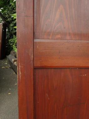 筆で書いたような文字が薄く残っています。落ち着いた赤茶色で上品な印象です。