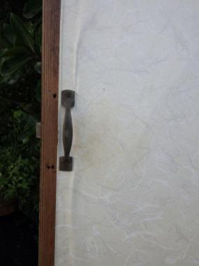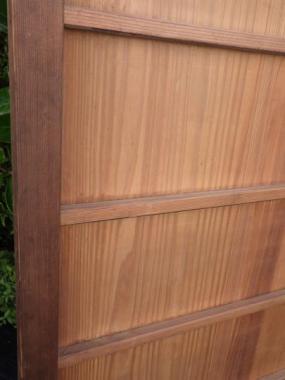 わけあり品。裏面が紙素材のため、お値引きしております。板とともに取っ手の部分も経年変化しており、良い味わいがでています。