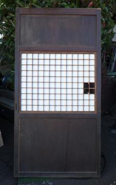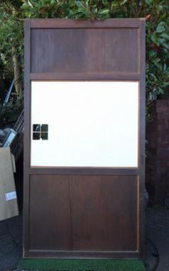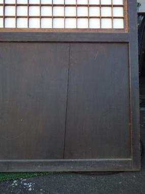 わけあり品。腰板が割れてしまっているため、接着剤で留める必要があります。障子の格子は升格子になっています。