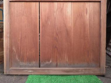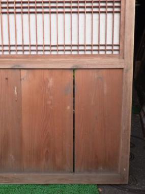 素材そのままという感じのする優しい色味です。在庫のうち2枚は取っ手付きです。腰に隙間、障子の格子に傷みが見られます。在庫のうち1枚は特に傷んでいる箇所が多いので5,000円お値引き致します。