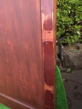 鍵のところの金具の模様が控えめながらも魅力的な表情です。自然な赤みのある茶色で親しみやすい雰囲気があります。