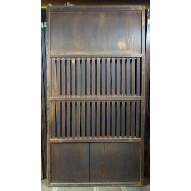 杉の中二無双板戸です。無双の開閉はスムーズにできます。高さ1,755mm幅927mm厚み30mmです。板の部分に割れがございます。以下写真にてご確認下さい。 詳細はお問い合わせ下さい。 上部の板に割れ↓腰板部分に割れ↓
