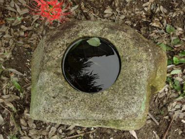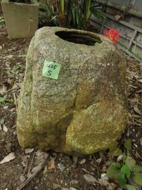 向きによって凛とした表情を見せたかと思うと、足が出たような妙な面もあり、なんだか可笑しくなる憎めないかたちをしています。水を溜める所は直径200×深さ100です。