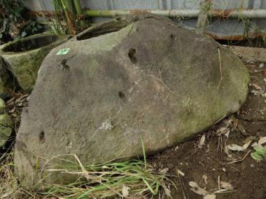 上から覗くとダイナミックな富士を思わせるかたち。穴や裂け目のような荒々しい表情もうかがわせる一筋縄では形容し難いすがた。庭園、露地に置かれれた時、その存在感にはっとさせられそうです。水が溜まる所は直径270×深さ100です。