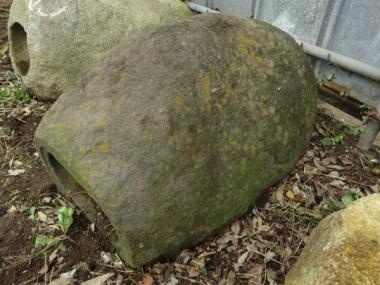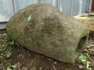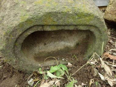 楕円に近い型で棗(なつめ)型といわれています。苔の色もしっくりと馴染み、老いたものの良さが表れています。水が溜まる所は320×280×80です。高さがありますので、かがまずに水を受けることができます。
