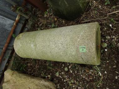 円柱状のつくばいで、かがまずに水を受けることができます。格別に主張の強い形ではないので、古びた場所でなくとも汎用性は比較的高いのではないでしょうか。水が溜まる所は、直径300×深さ120です。