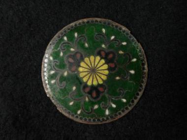 菊が中央に配された緊張感のある模様。七宝焼きでレトロな味わい。
