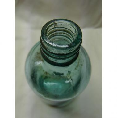 小さなお花と相性がよさそうな水色の小瓶。底面が微妙に盛り上がっており、近年の大量生産の小瓶では見られない形。 内部汚れがあります。写真にてご確認下さい。 高さ105mm直径20〜47mmです。