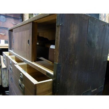 桐の時代箪笥です。内側は杉材の使用。明治の終わり頃のお品です。 価格は三段重ねた状態での表示です。 単体での購入をご検討されている方は、ご相談下さい。 サイズは、 上:高さ390mm幅910mm奥行き392mm 中:高さ495mm幅910mm奥行き392mm 下:高さ555mm幅910mm奥行き392mmです。