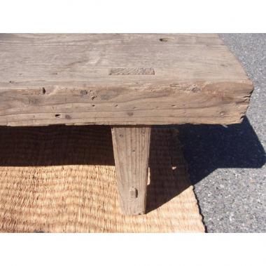 埼玉県のいわつき、酒蔵で使われていた縁台です。高さ430mm縦817mm横1,650mmです。詳細お問い合わせください。天板部分に目立った傷みはありませんが、丸い穴が二箇所空いています。丸穴の用途だったのか不明ですが、ひろーい天板の中にぽちぽちと、なんだか愛らしいアクセントにもなりそうです。青いペンキがちょっとついてます。詳細、お問い合わせ下さい。