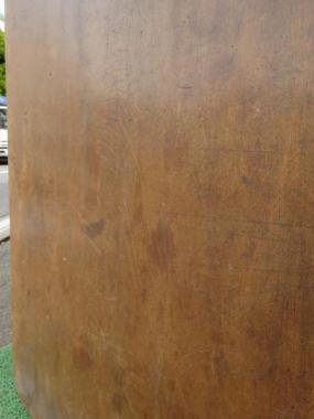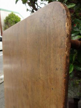 天板が585×825で、高さが300です。使い勝手の良いサイズ感。足のところには竹のような加工があり、良い味になっています。天板の風合いも新品にはない味わいです。
