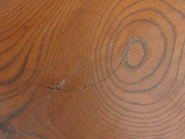 角がまるくて優し気な雰囲気があります。一枚板を使っていますので、木目の面白さを存分に味わえる逸品。柿渋塗装でより輝きを取り戻しそう。