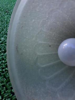 上部が螺旋状にツイストしているデザインです。傘の部分は特殊なガラスになっており表面に粒々のディテール、内側は曇りガラス風になっています。