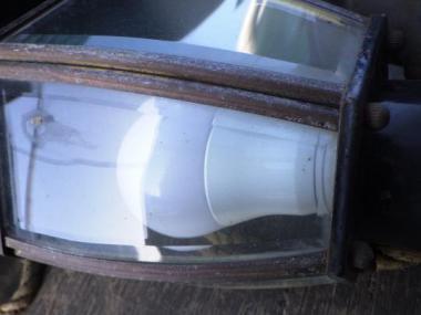 自然に錆びた金具などレトロな味わいがつまった照明です。ガラスの繊細な意匠であかりが魅力的に灯ります。