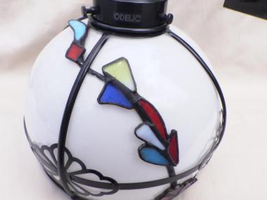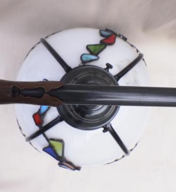 一つ一つの色が小さく愛らしく色を灯し、光のハーモニーを演出します。傘は高さ170mm円周195mmと小柄ですが、光を灯さない状態でも目を惹く魅力的な一品です。柄の先端には真鍮が使われています。