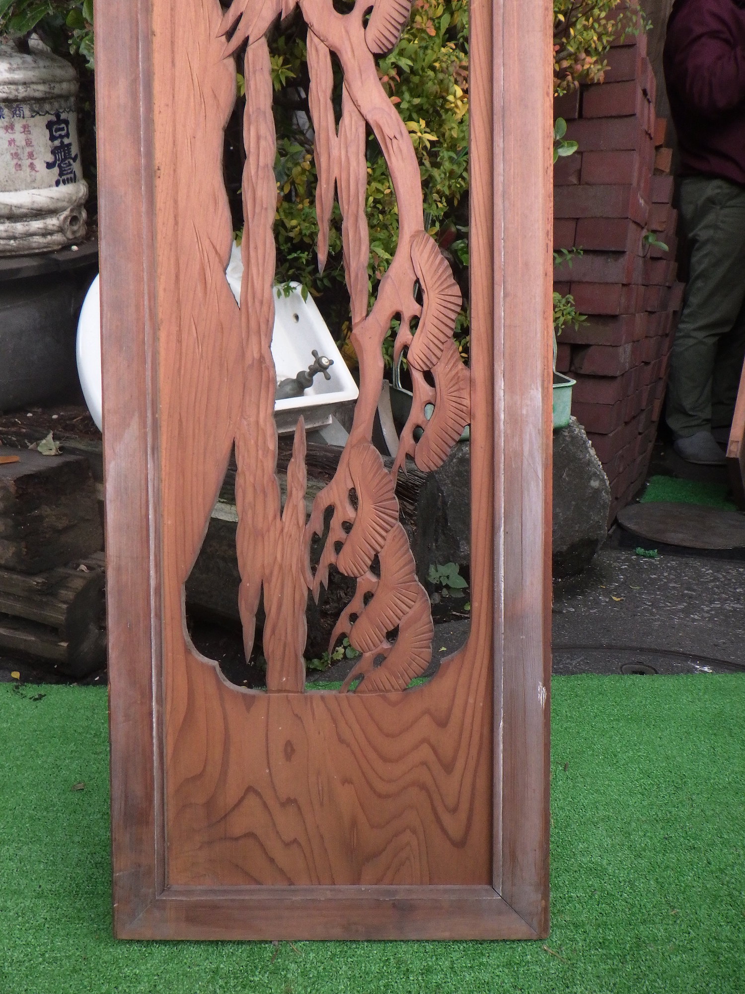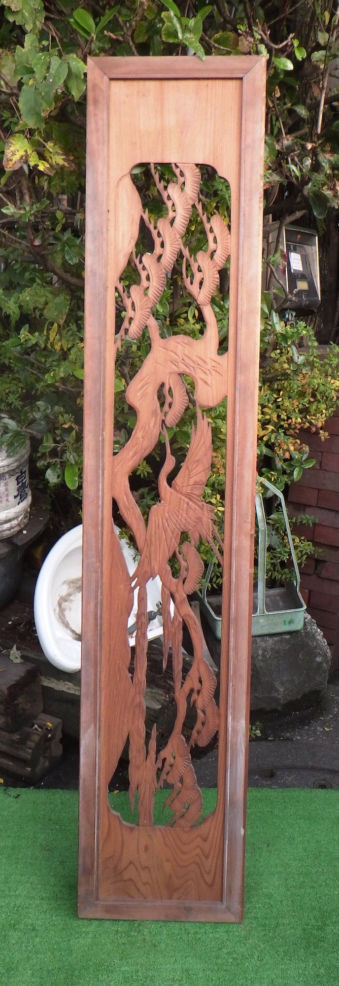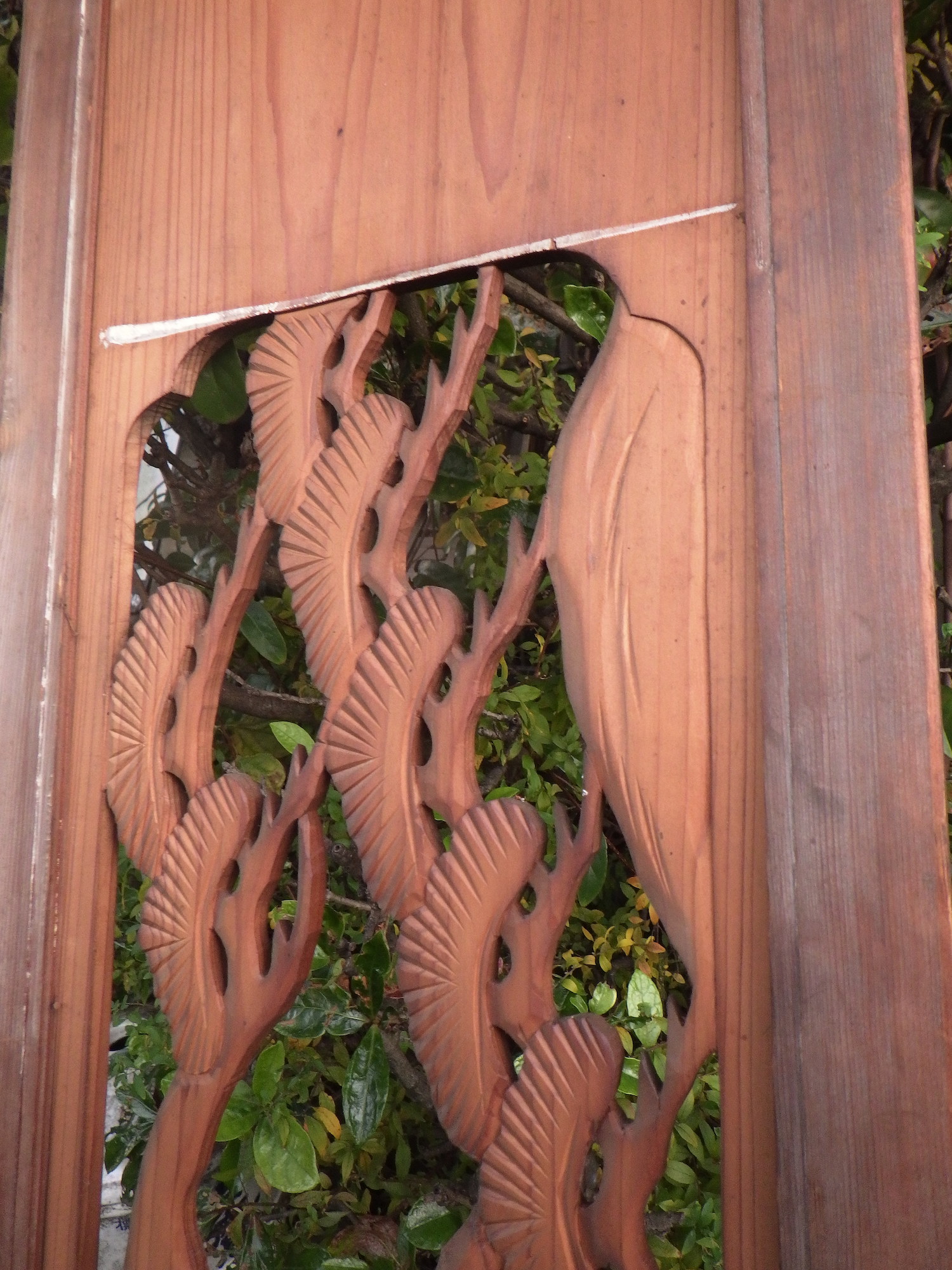 鶴と松の彫刻が彫られています。松の枝のリズムが特徴的です。
