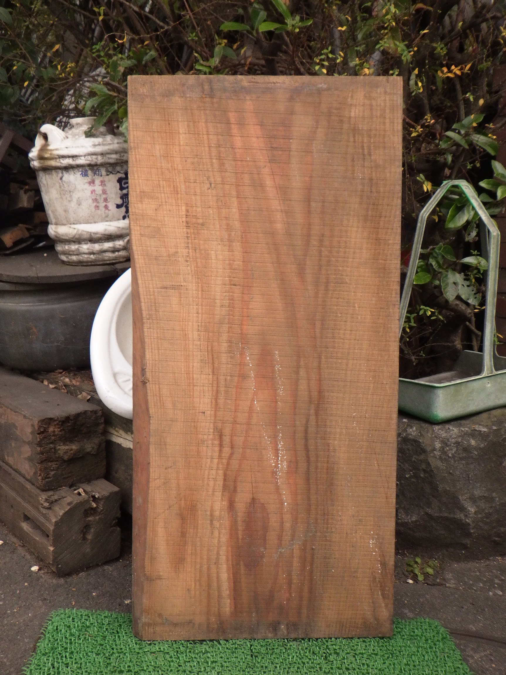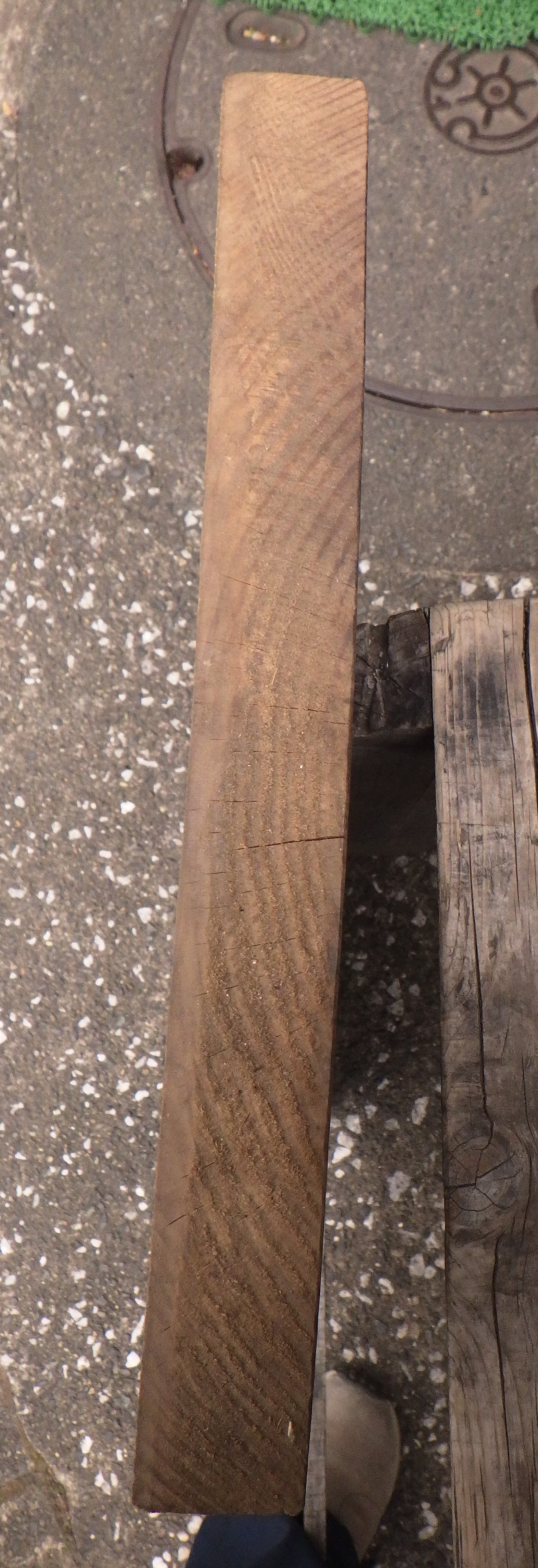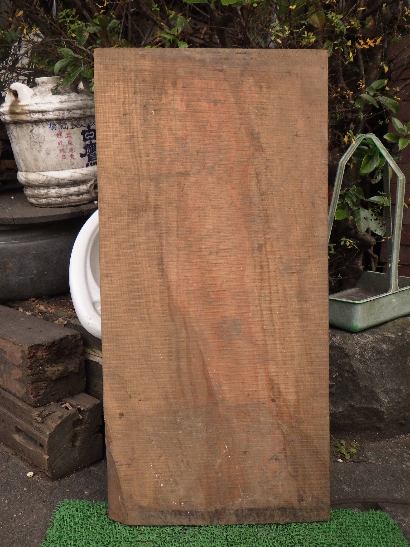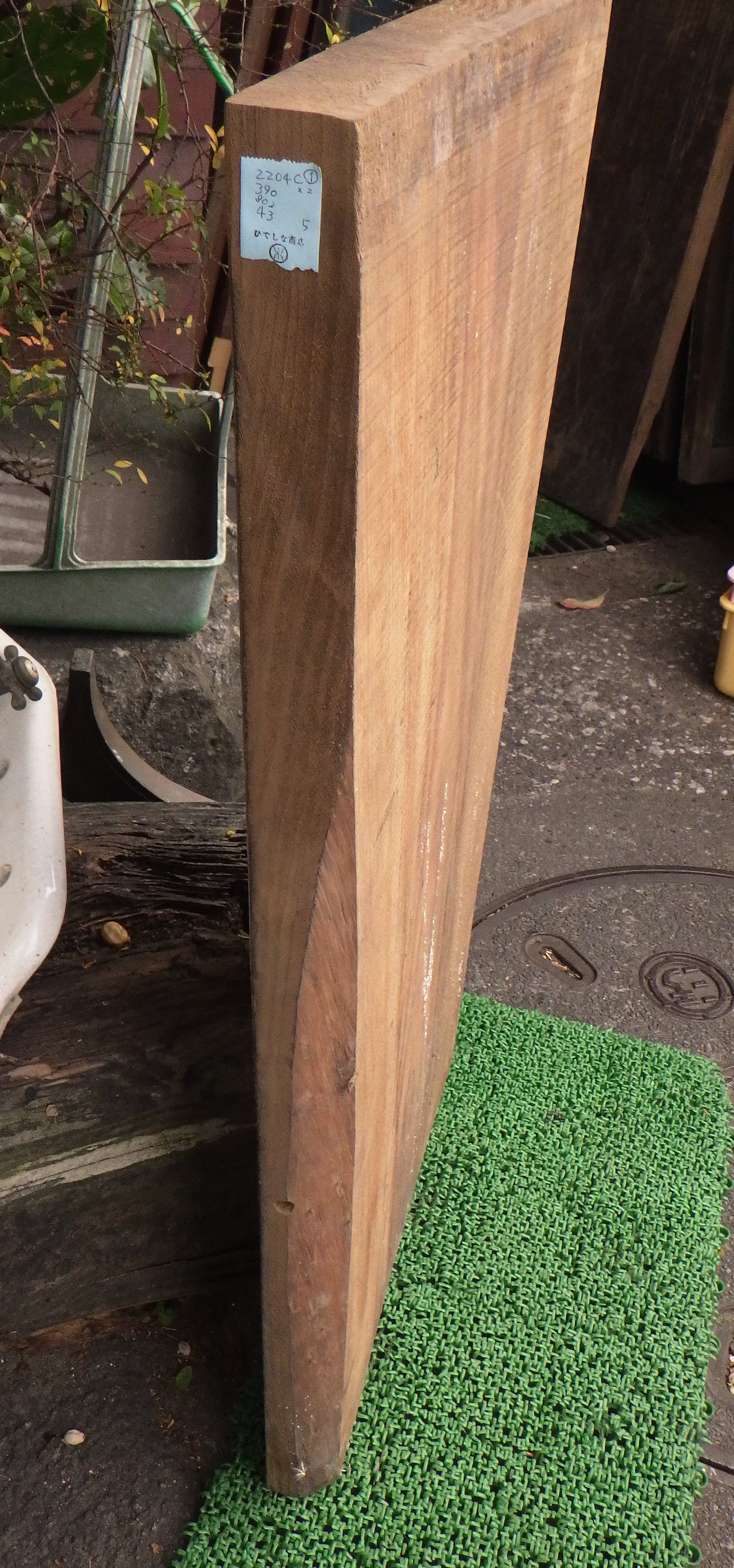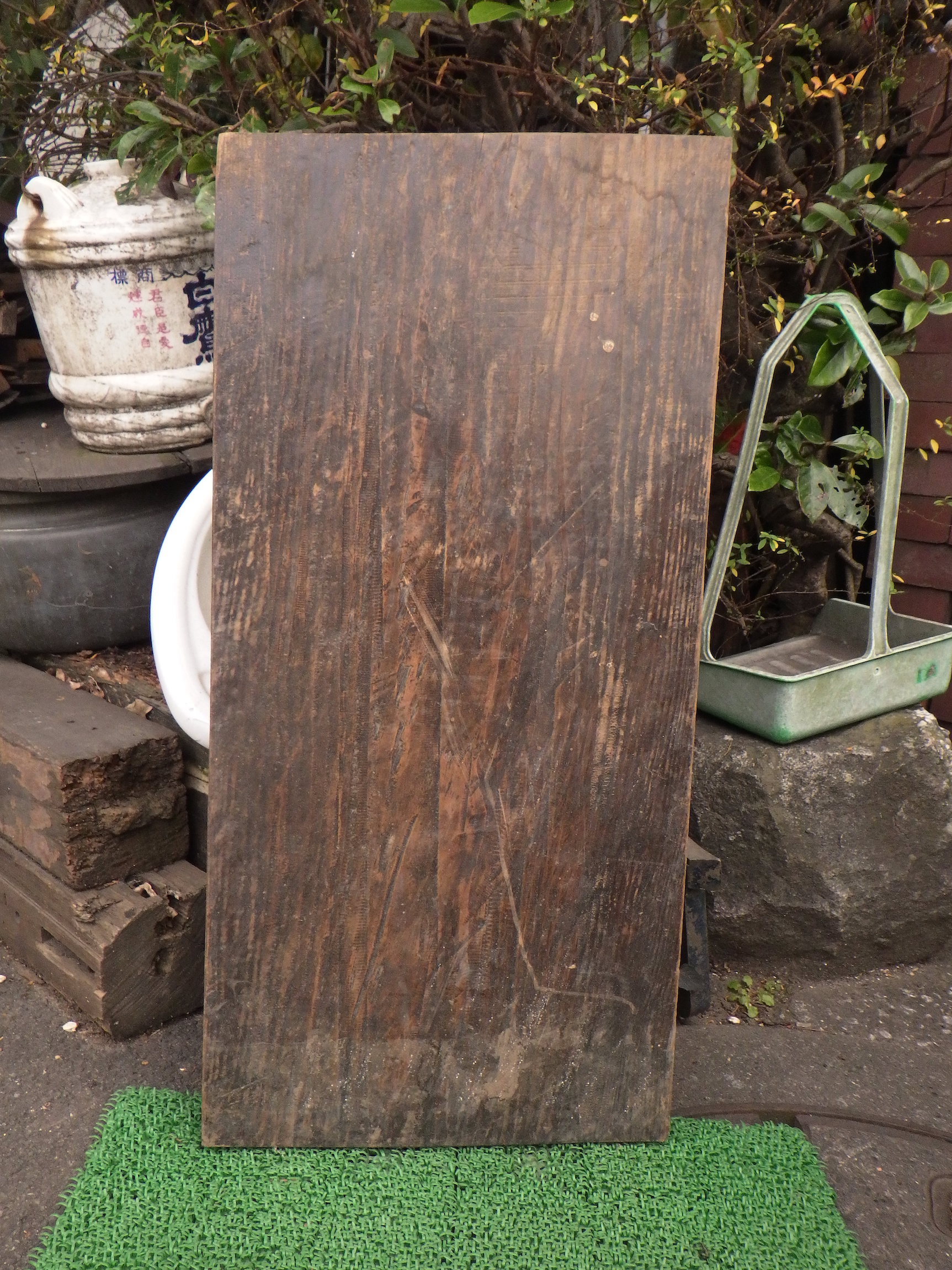 ①が写真の1~4枚目です。②が5,6枚目です。①は真上から4枚目のように真上から見ると板が少し反っているのがわかります。小田原の民家で使われていたものです。