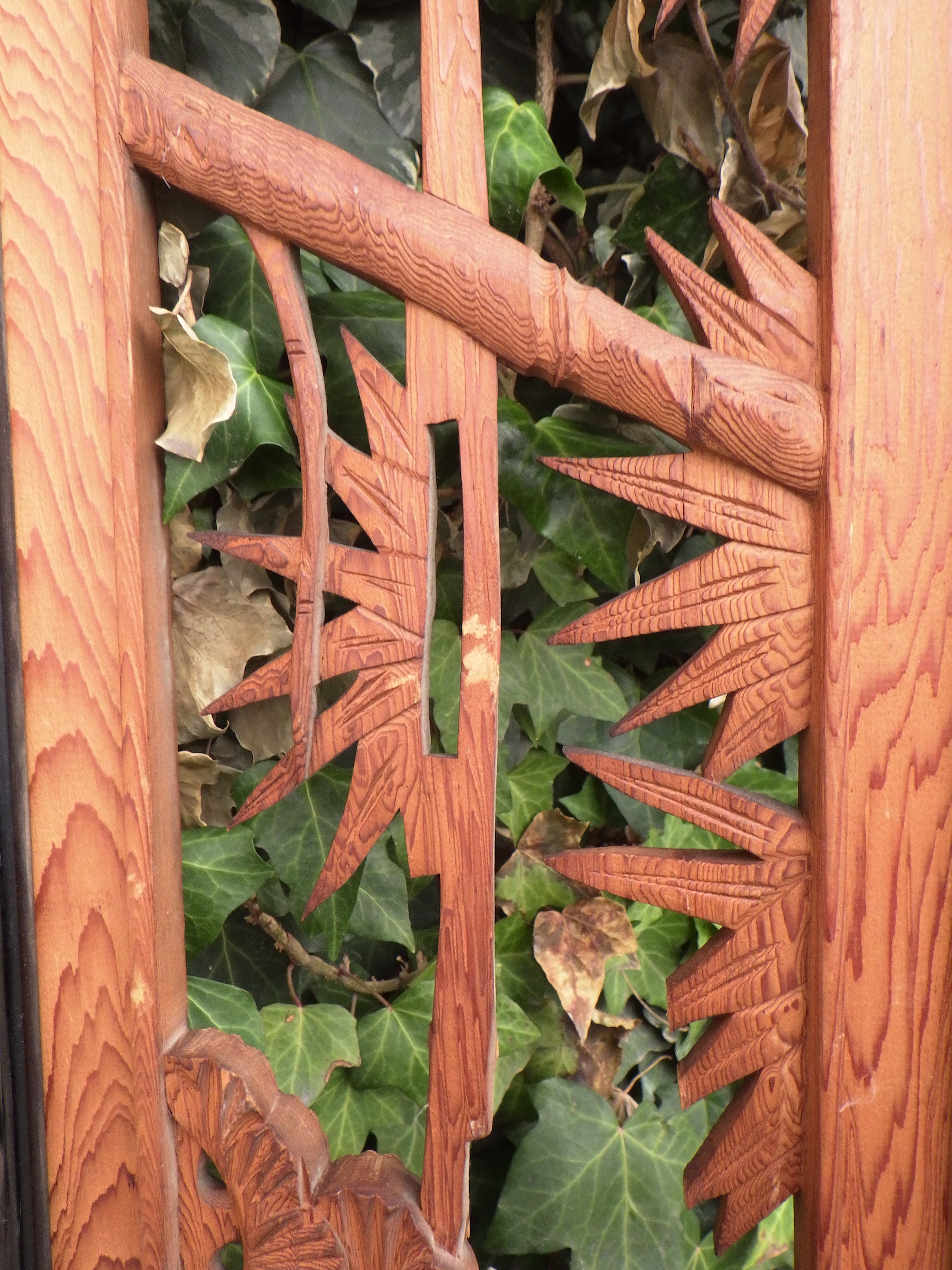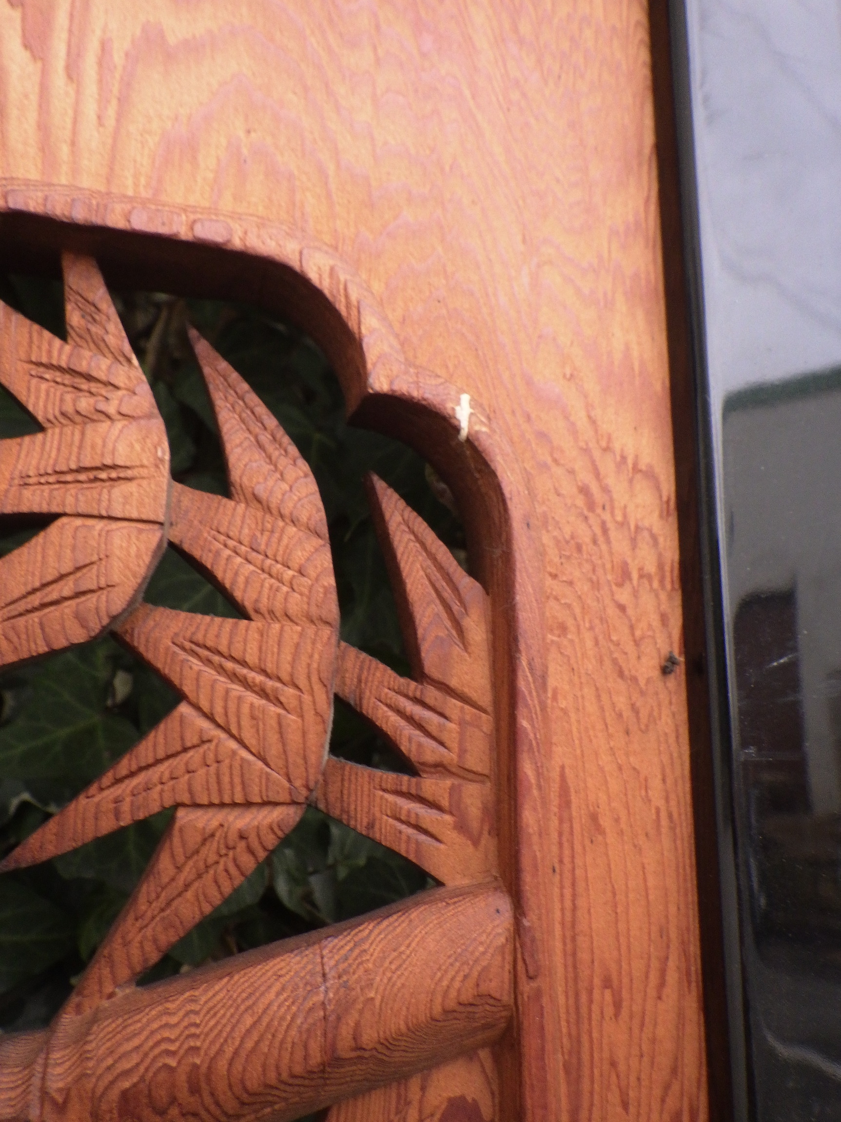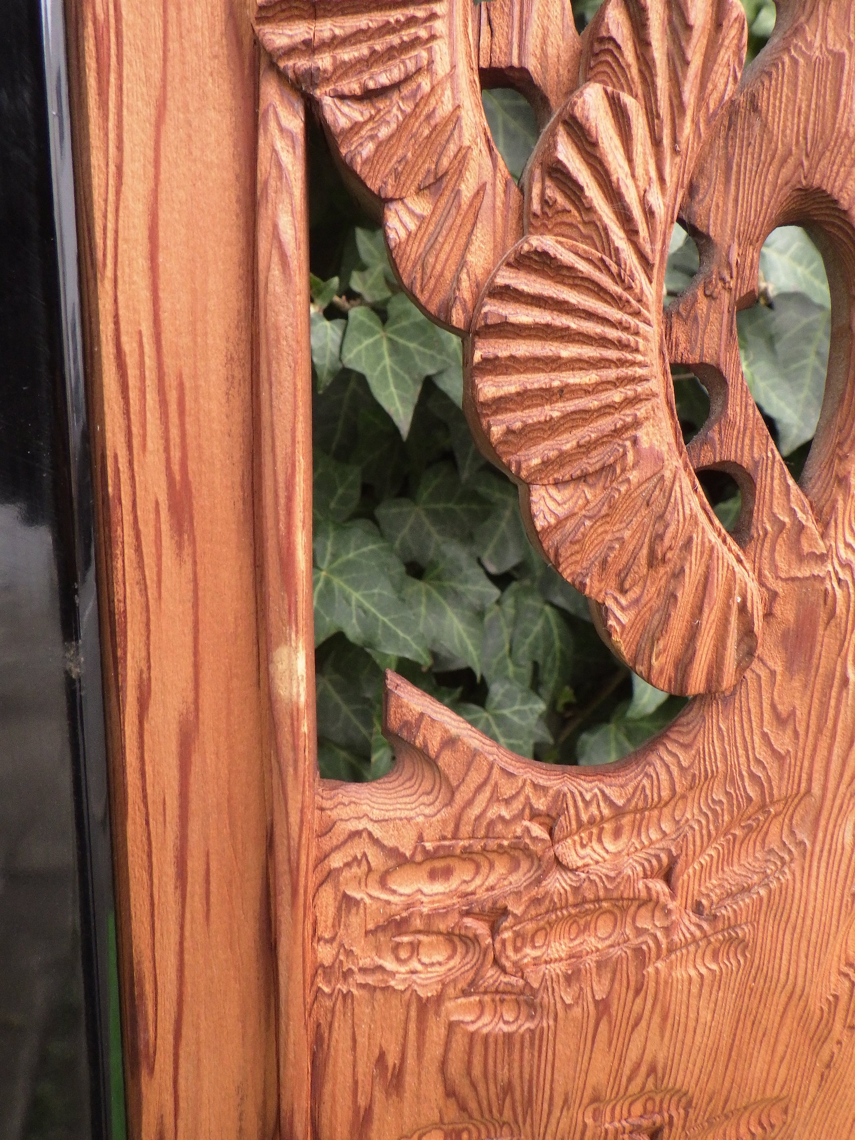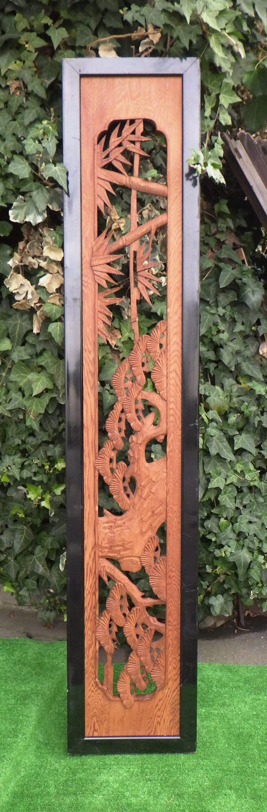 竹と松の彫刻欄間です。立体感と木目の面白さが魅力です。
