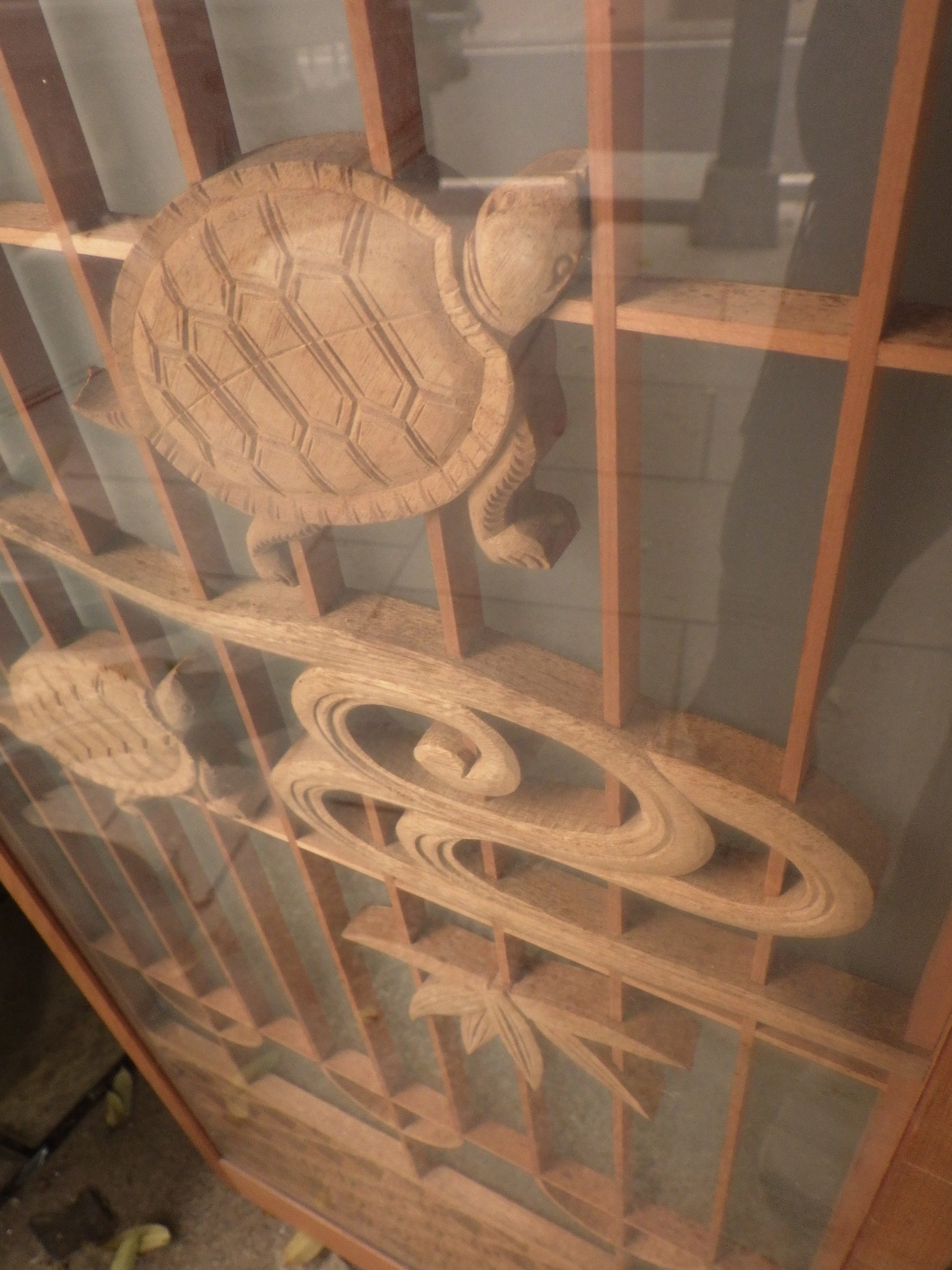 東京の世田谷区の民家で使われていたガラス入りの書院障子戸です。片面が曇りガラスですので向こう側が透けて見えません。彫刻は鶴亀や松など、縁起のいい絵柄になっています。写真は2枚並べて撮影していますが、値段は一枚あたりで表示しています。