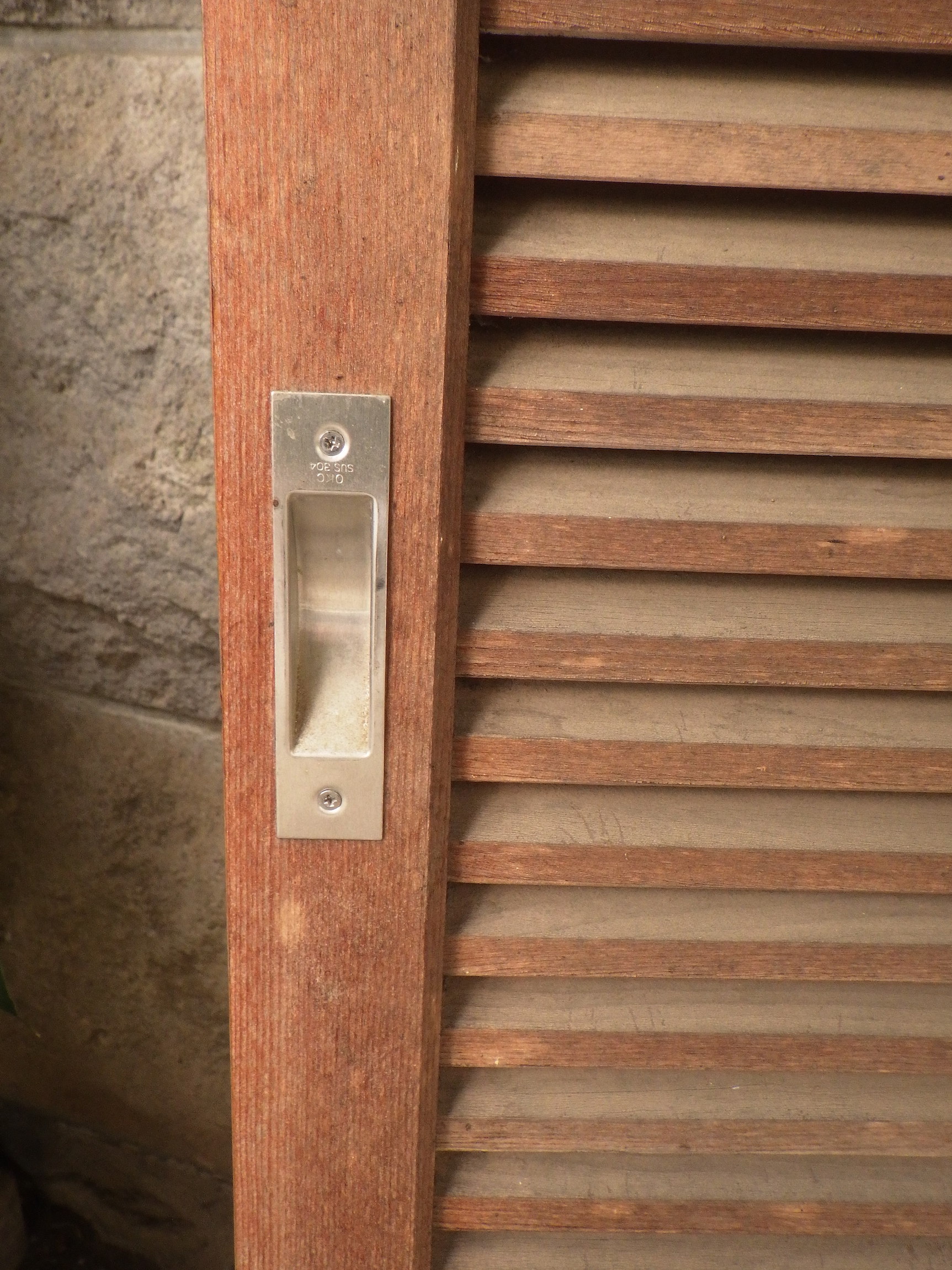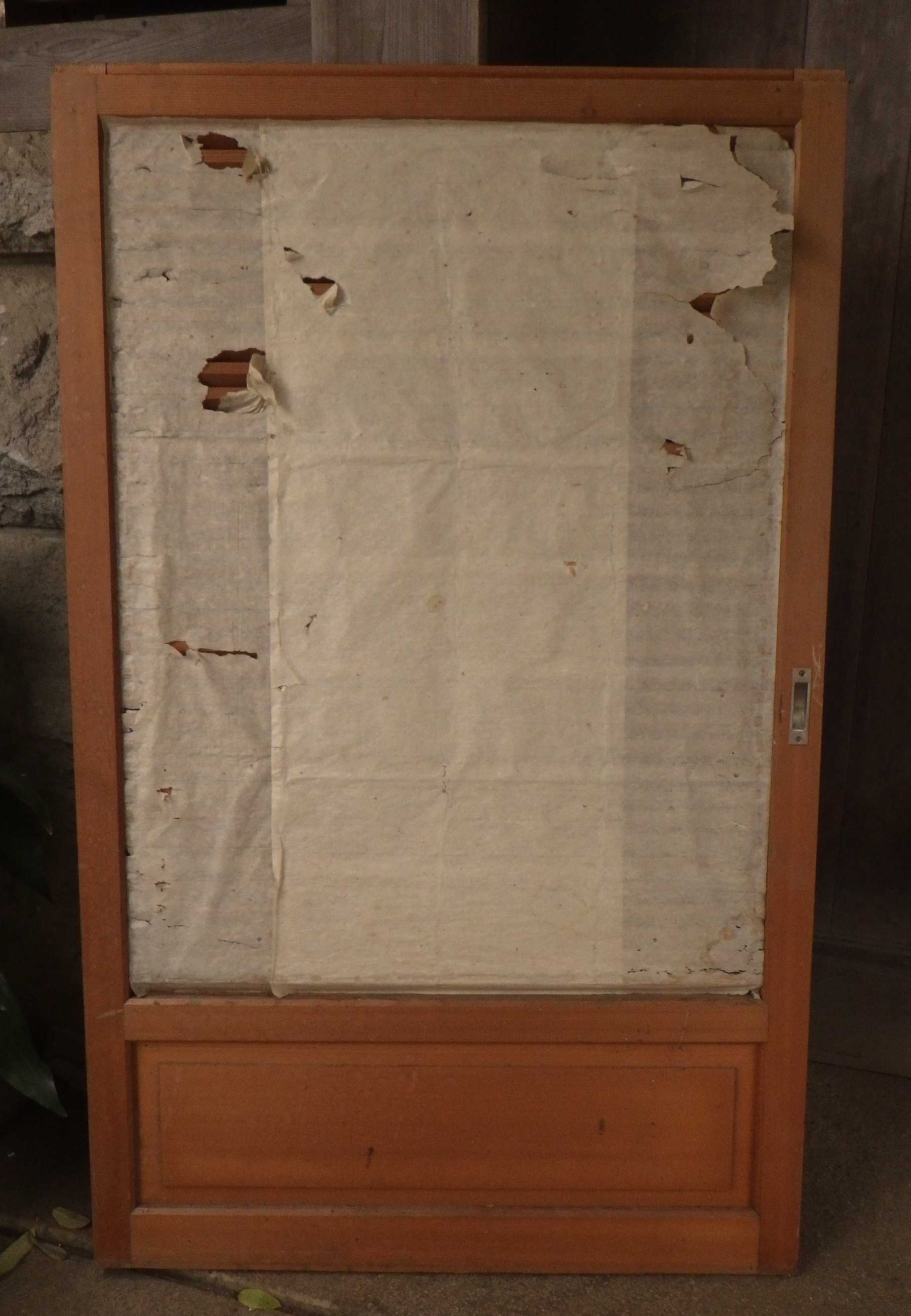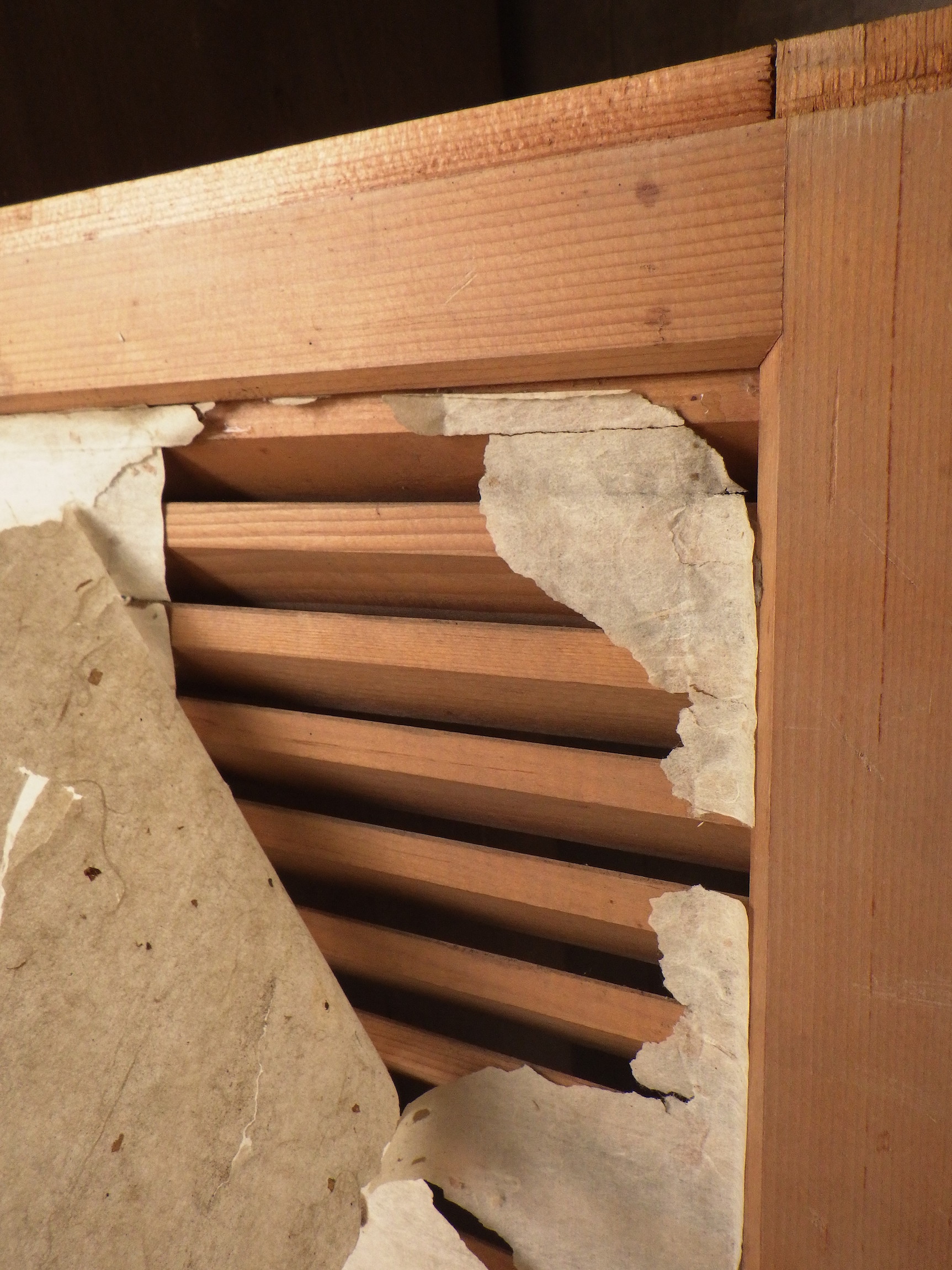 東京の世田谷区の民家で使われていたものです。ルーバー型になっている為、風通しをよくできます。現地では片面に障子紙が貼られていましたが、剥がしても向こう側が透けて見えるということはなさそうです。