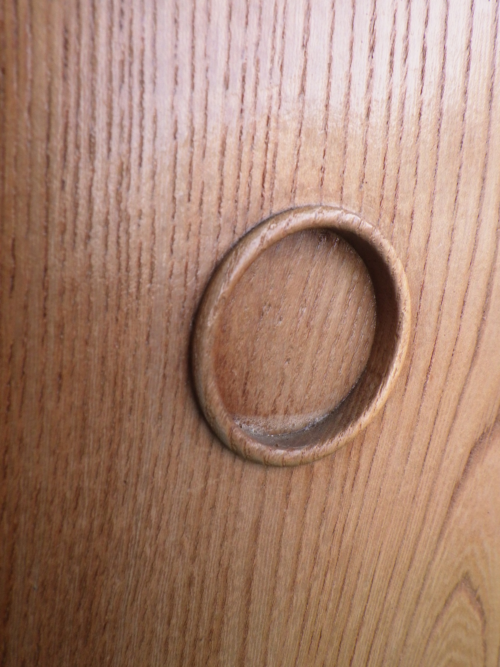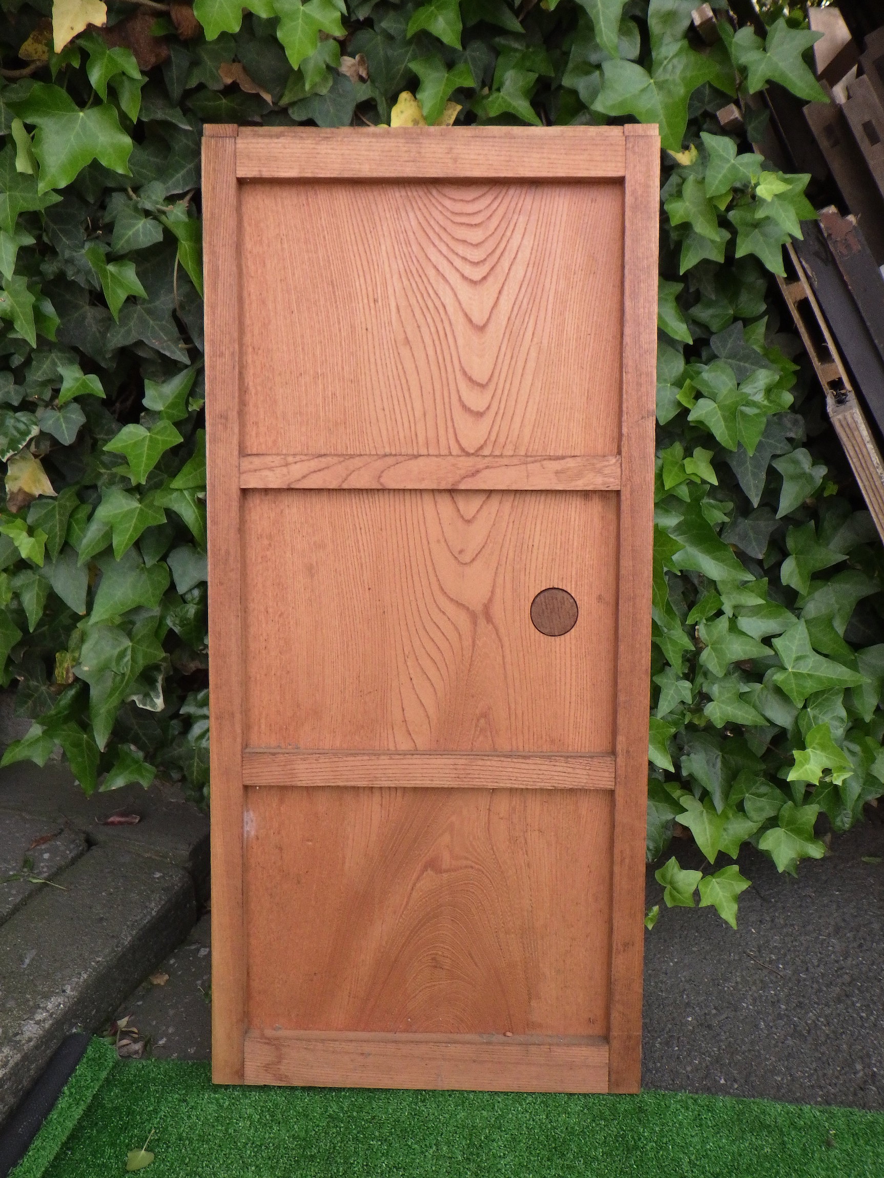 ケヤキの棚の戸です。取っ手は目立ちにくいデザインです。リメイクの材料としてもおすすめです。