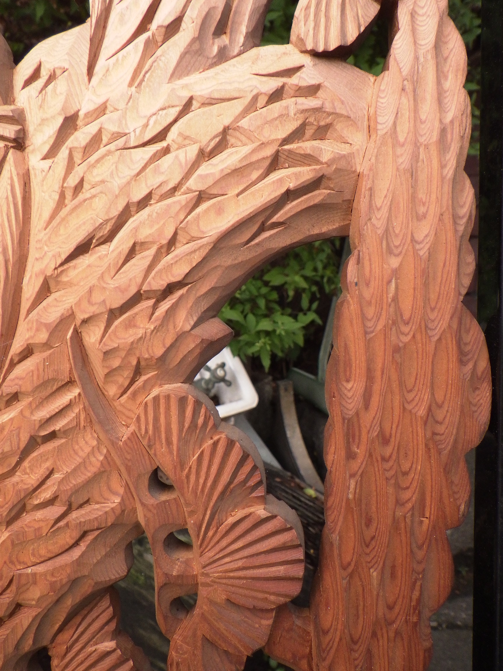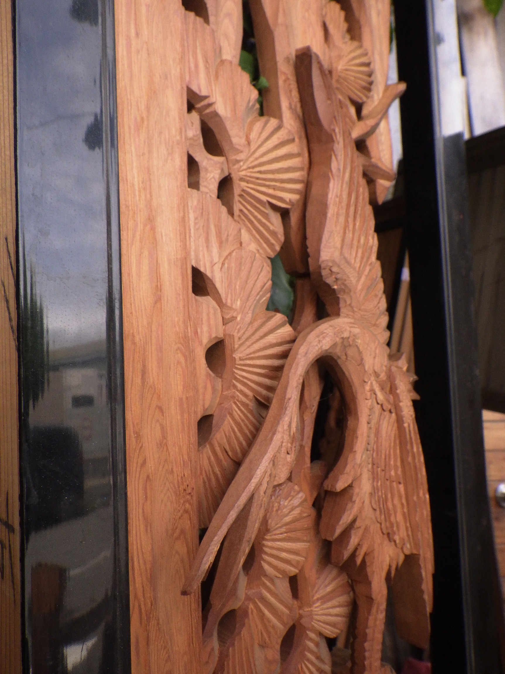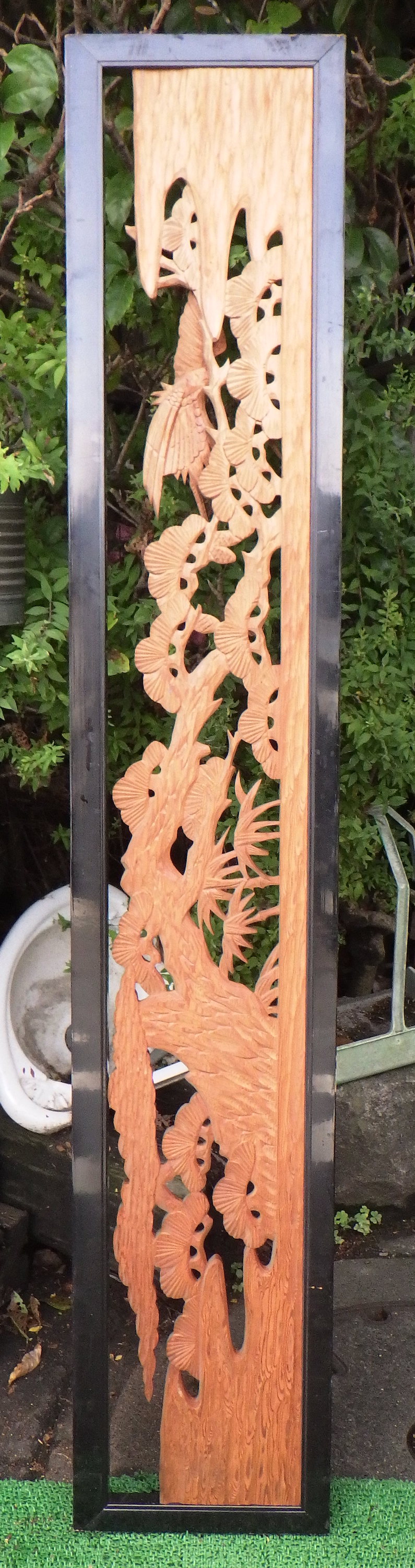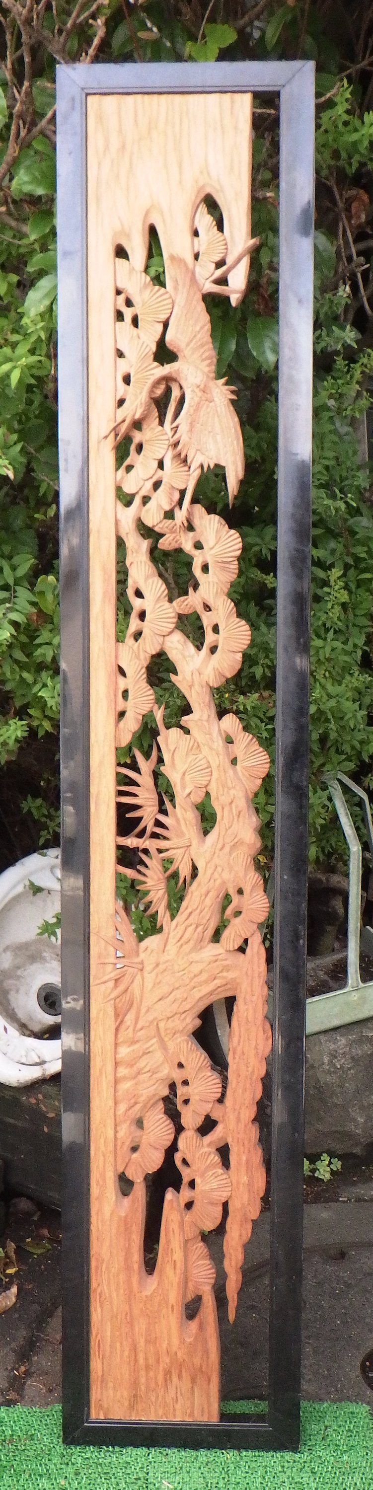 松竹と鶴の縁起の良い絵柄です。鶴は貼り付けられているようです。厚みは25mmですが、鶴の厚みを除いた厚さを計測しています。