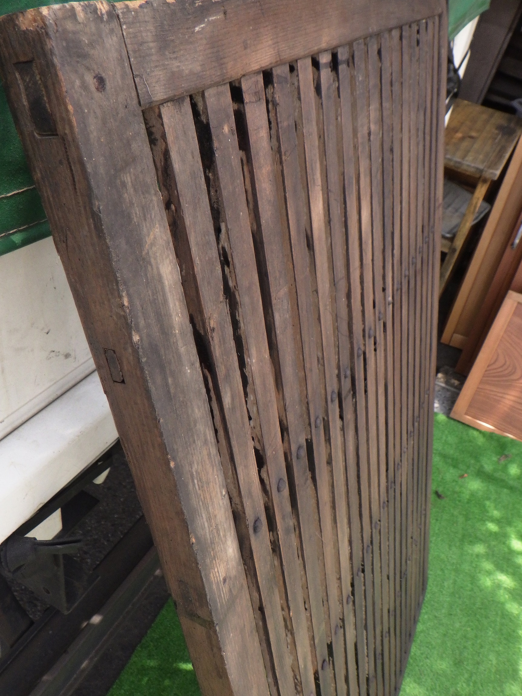経年変化による表情がなんとも味わい深いです。逆光のシーンで時代劇とかに使われていそう・・・と想像膨らむ建具です。