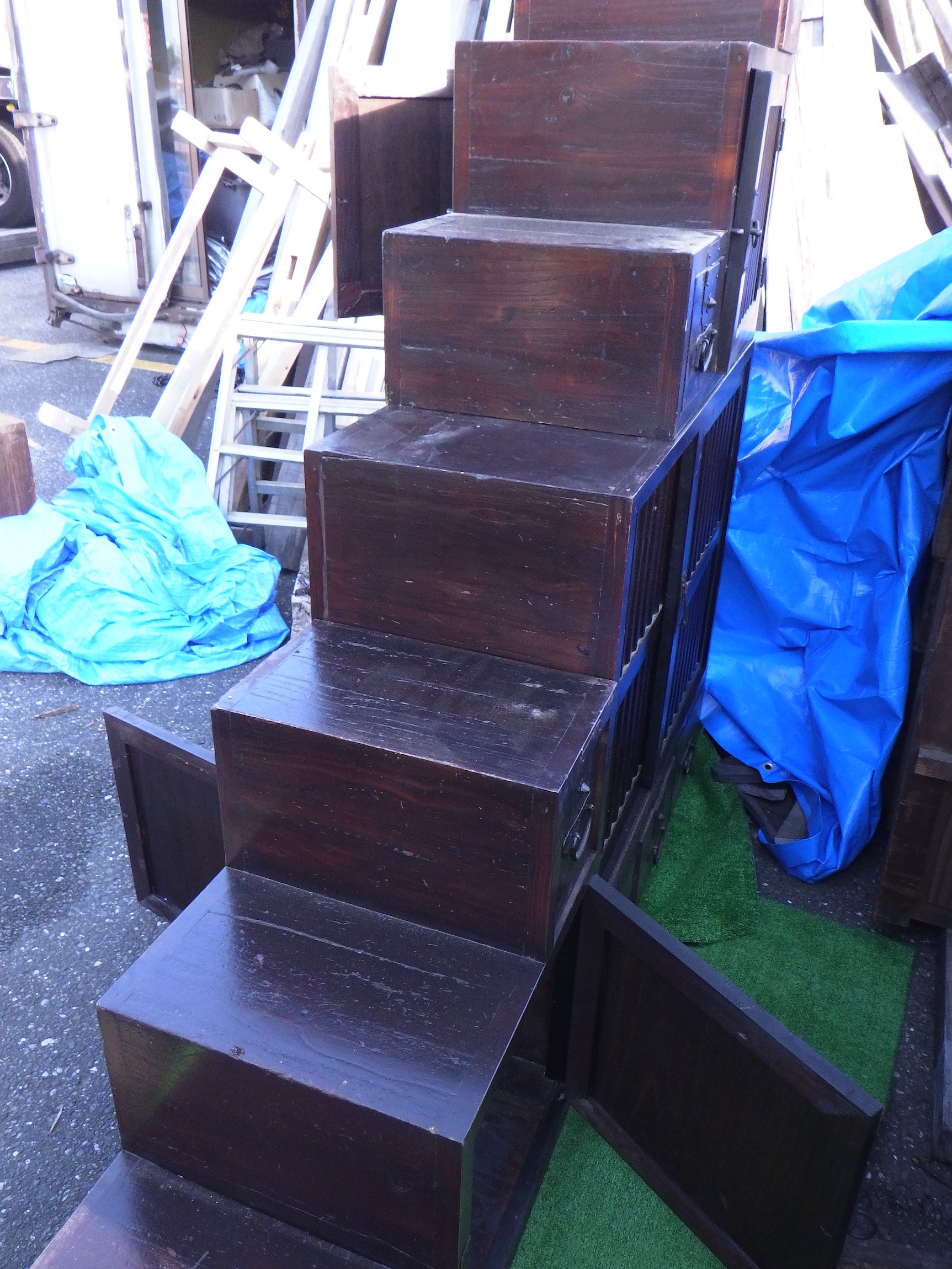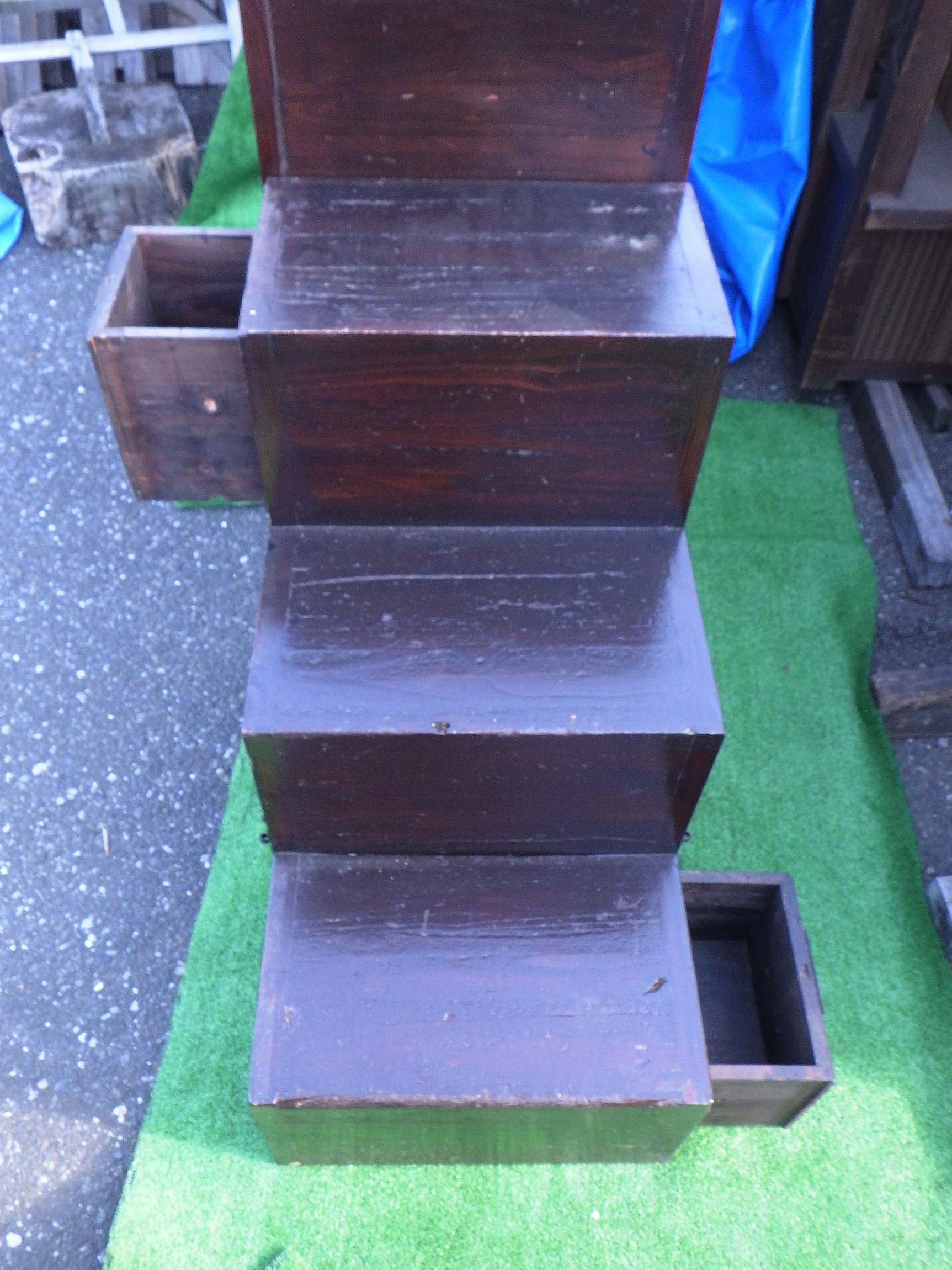 主役の家具になりそうなインパクトのある存在感です。すべすべとしたお掃除しやすそうな質感です。階段は一段ごとの大きさはH226mm×D237mmです。両側から扉や引き出しを開けることができるのも特徴です。