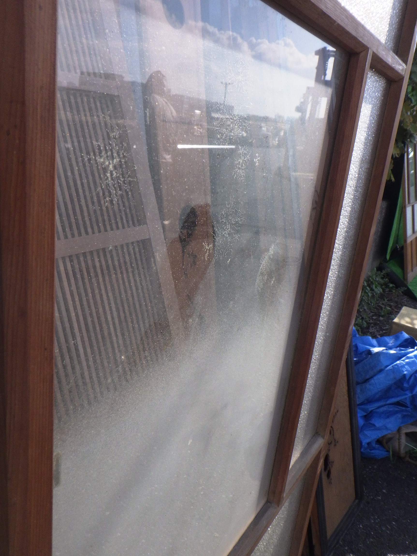 シンプルで扱いやすいデザインです。在庫のうち一枚は中央のガラスが4枚目に掲載した写真のようにすりガラスから透明のグラデーションのガラスになっています。
