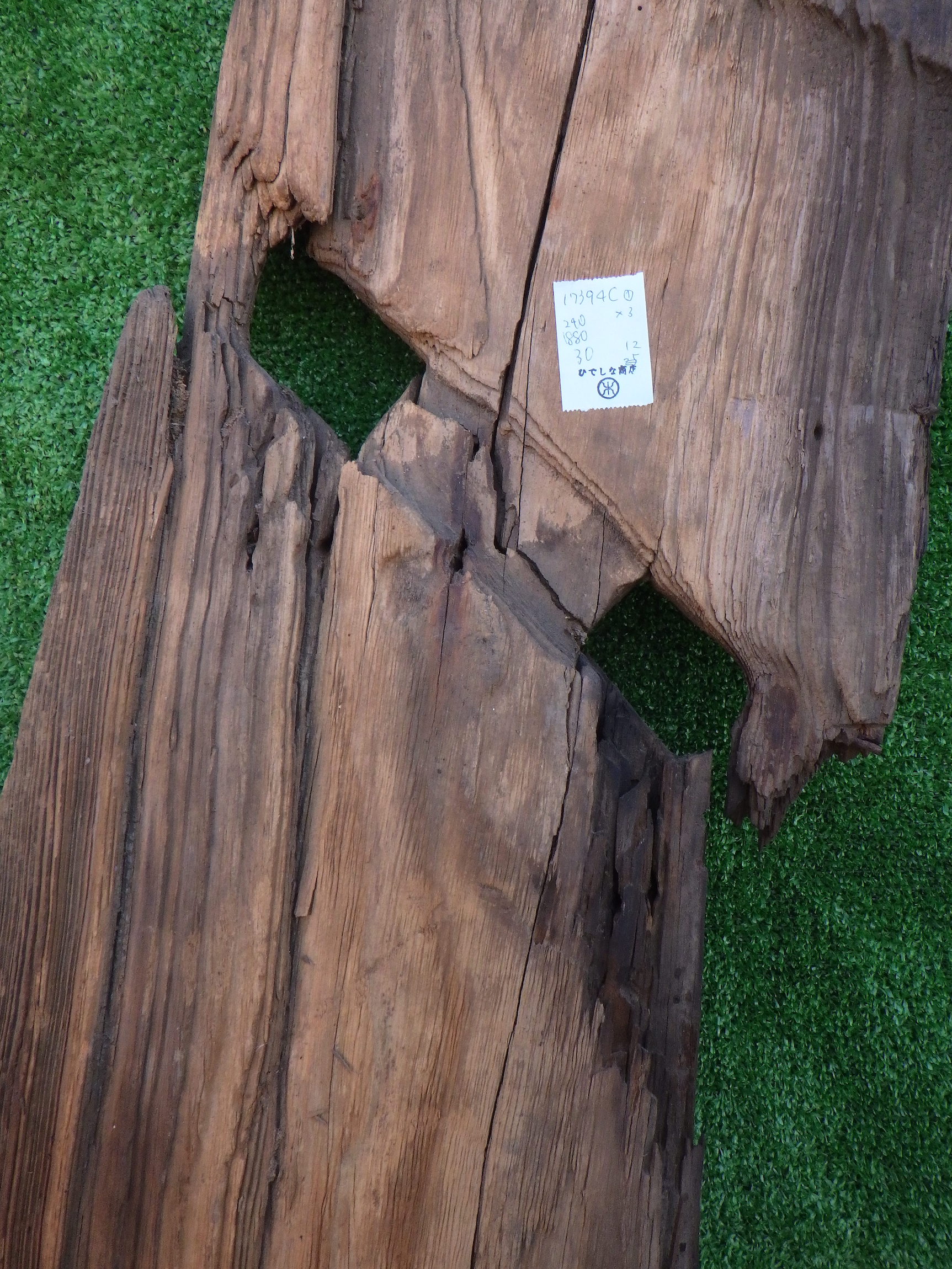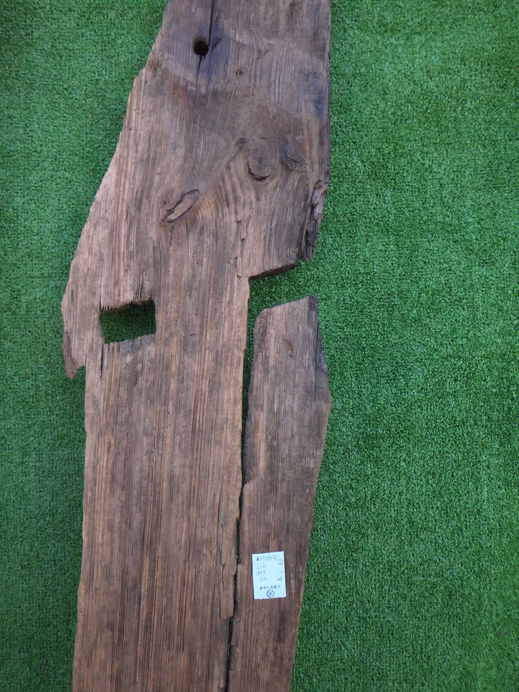 わけあり品。安く入荷できたため。 寸法はおよそになりますが、以下のようになります。 ①240×1880×30 ②210×1855×30 ③250×1875×30 個性的な一点ものの板です。ユニークな形を生かして棚板などの使用にもおすすめです。