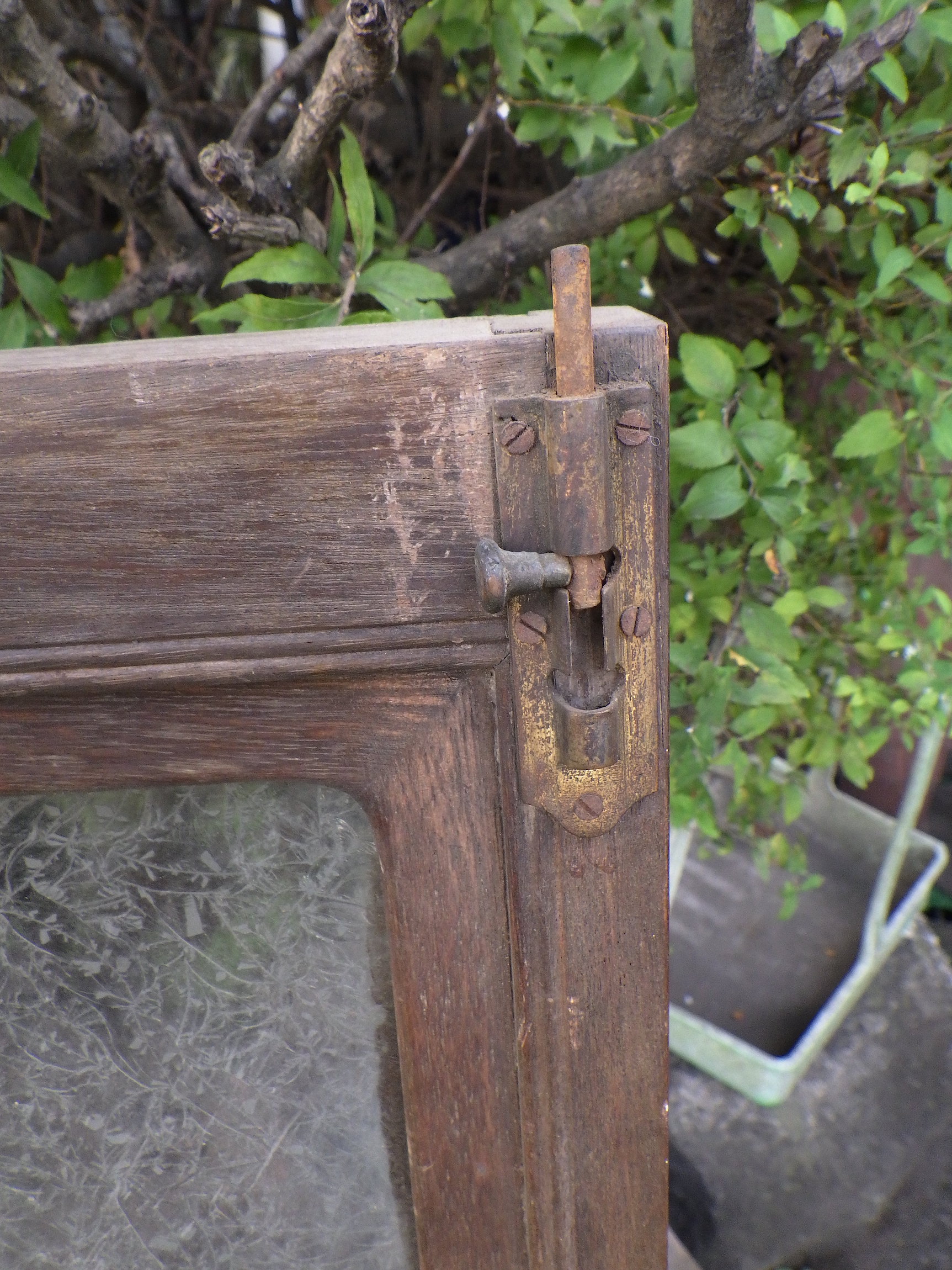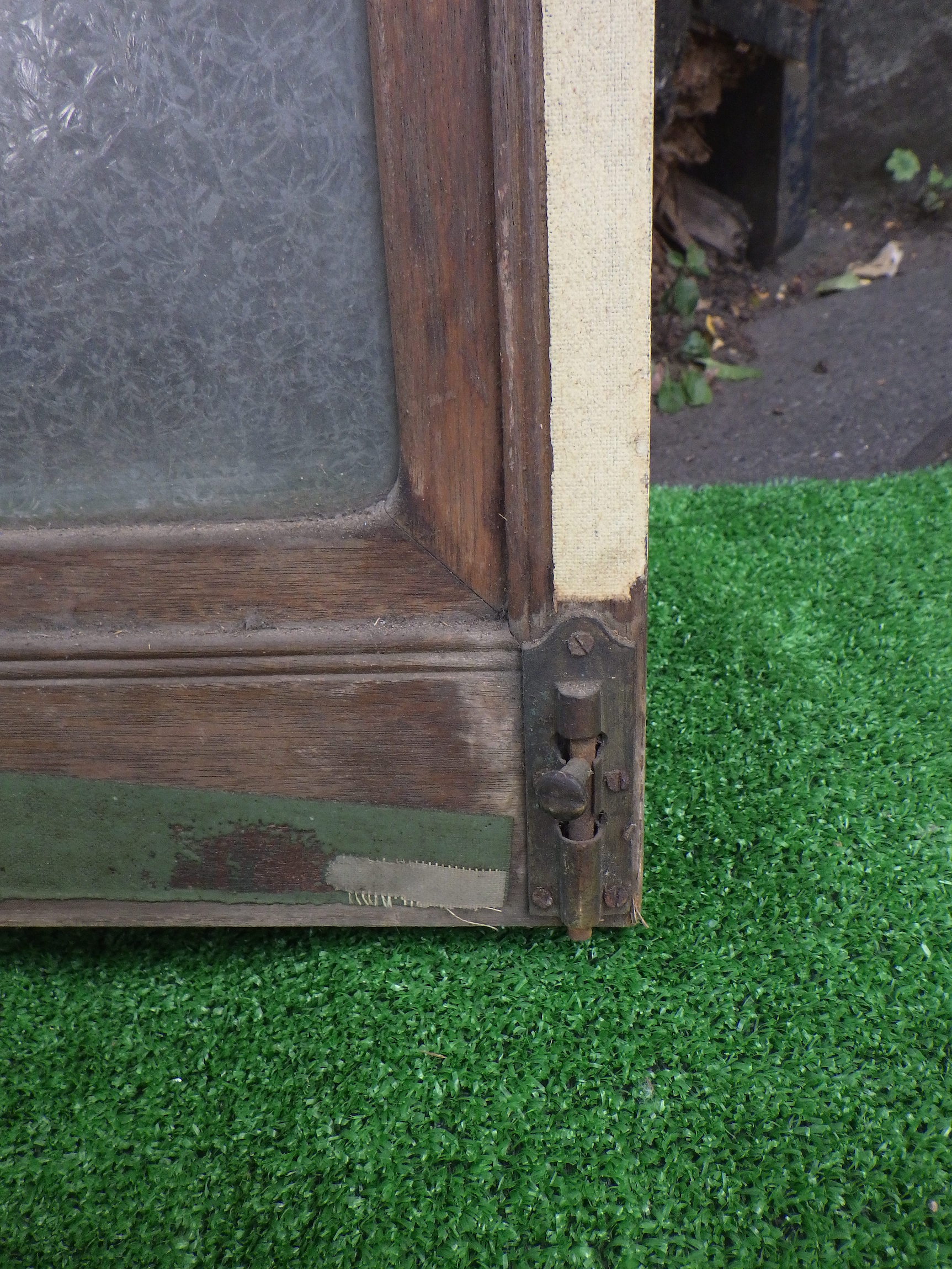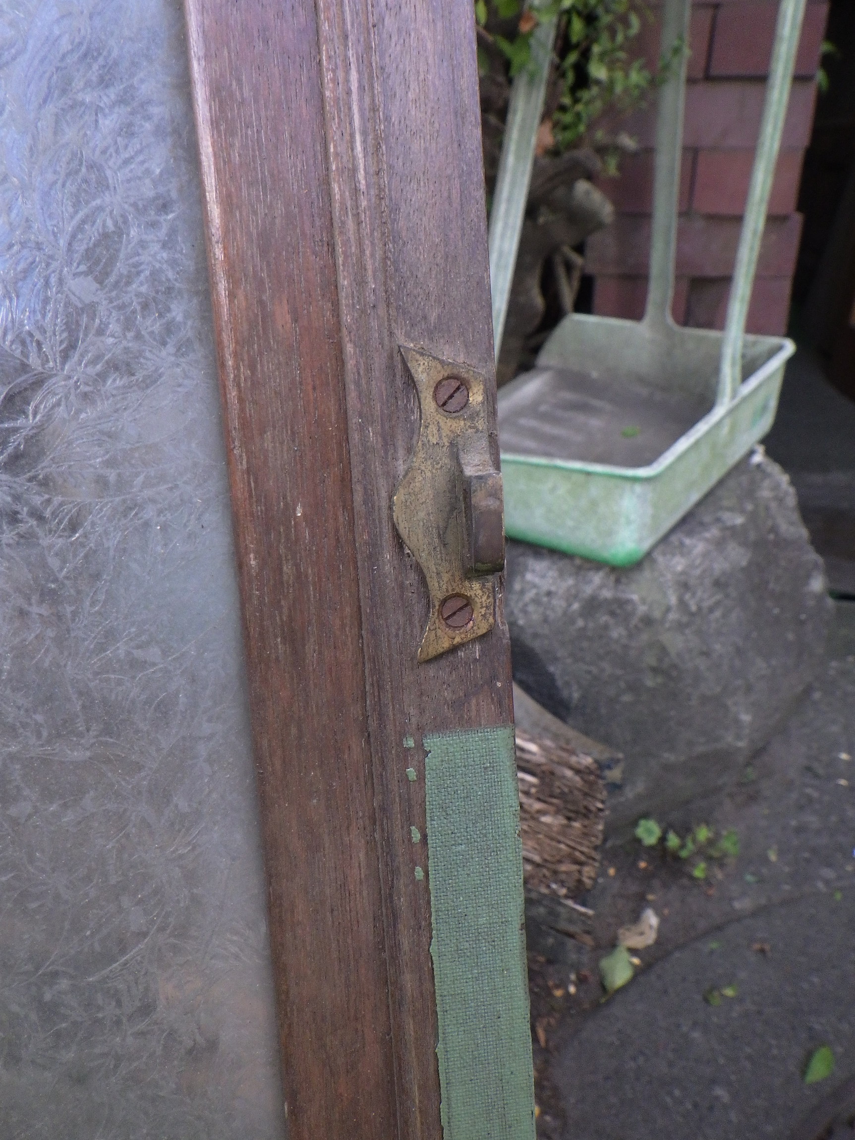 千葉県市川市の民家で使われていたものです。ガラスと枠がマッチしてレトロな味わいです。金具も見応えがあります。
