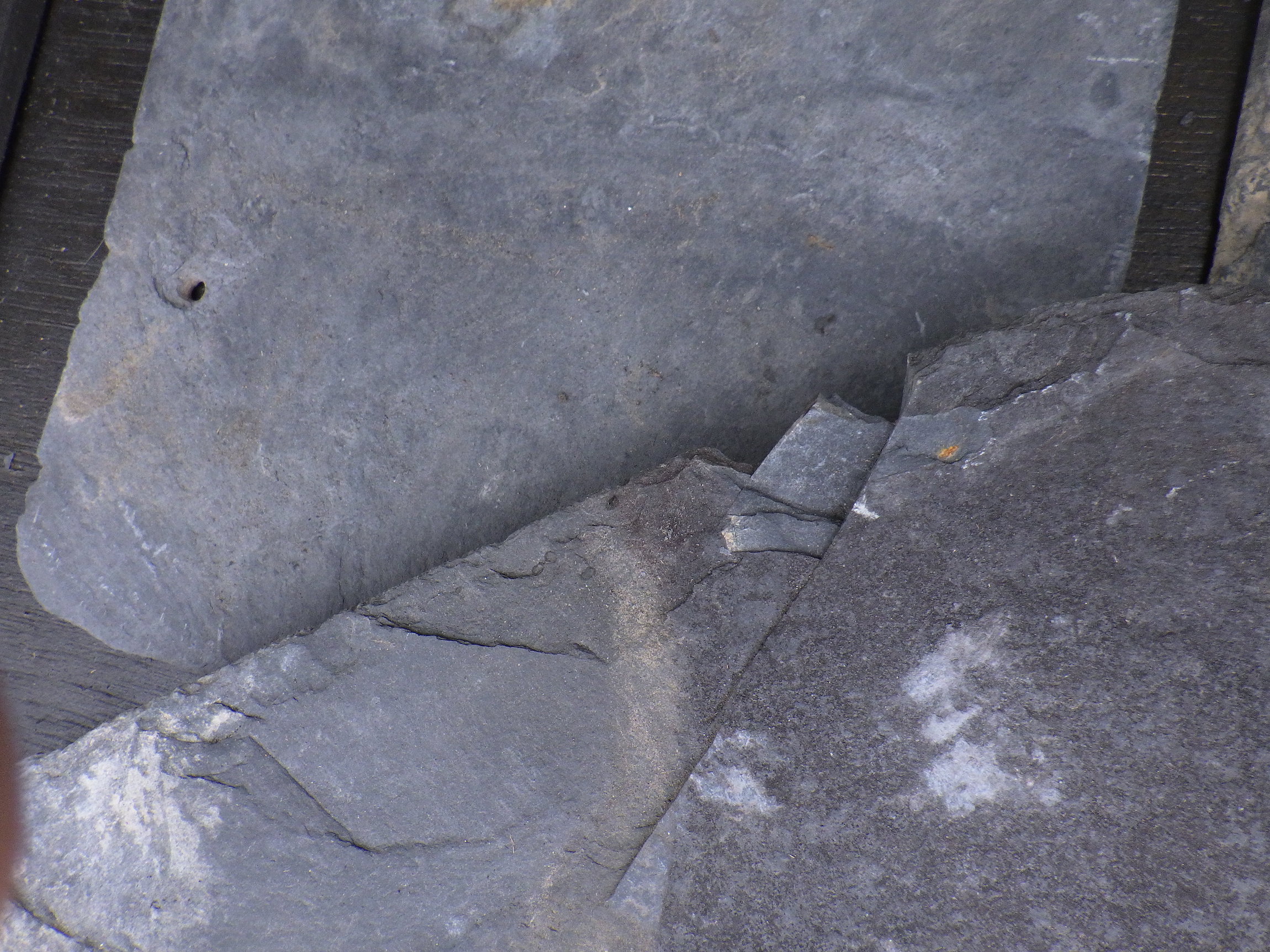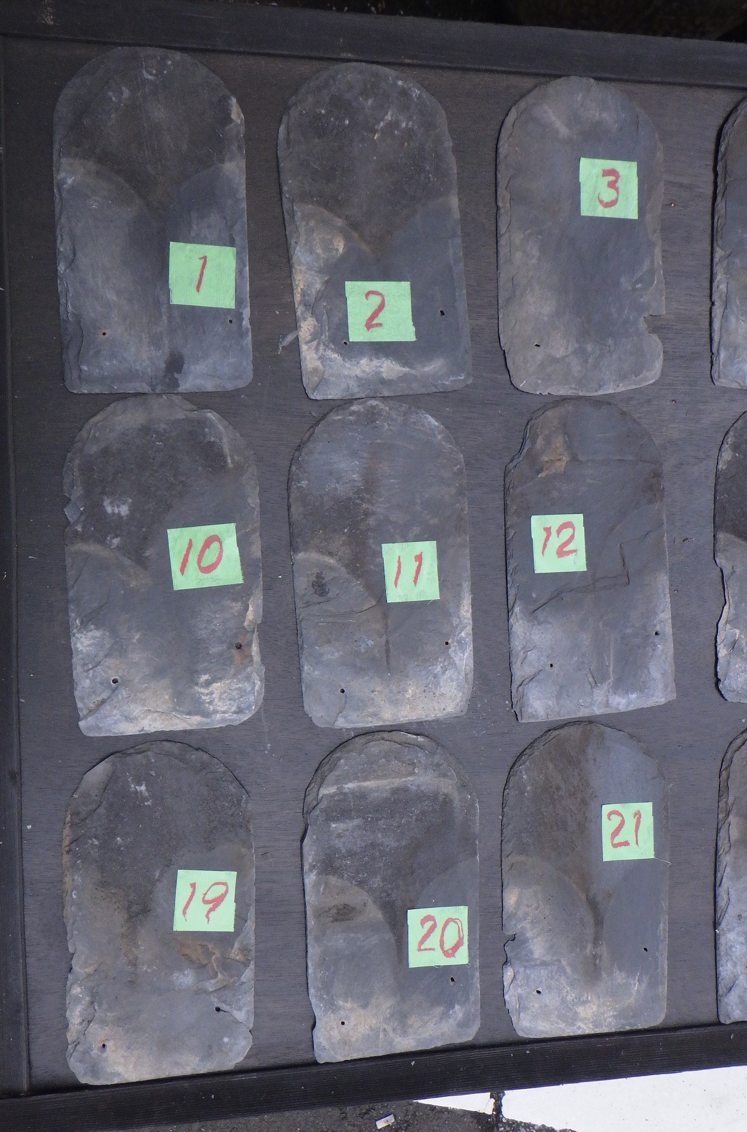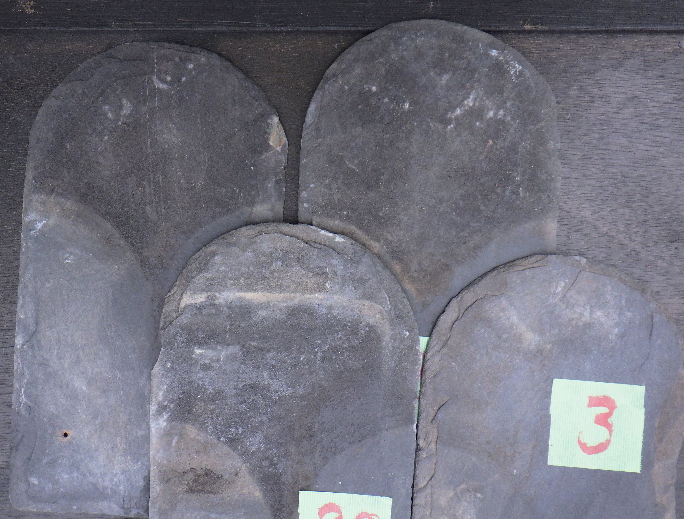 スレートの屋根です。重ねた形にあわせて屋根の跡が残っており、大変面白い素材です。在庫一杯ありますので、お問い合わせください。
