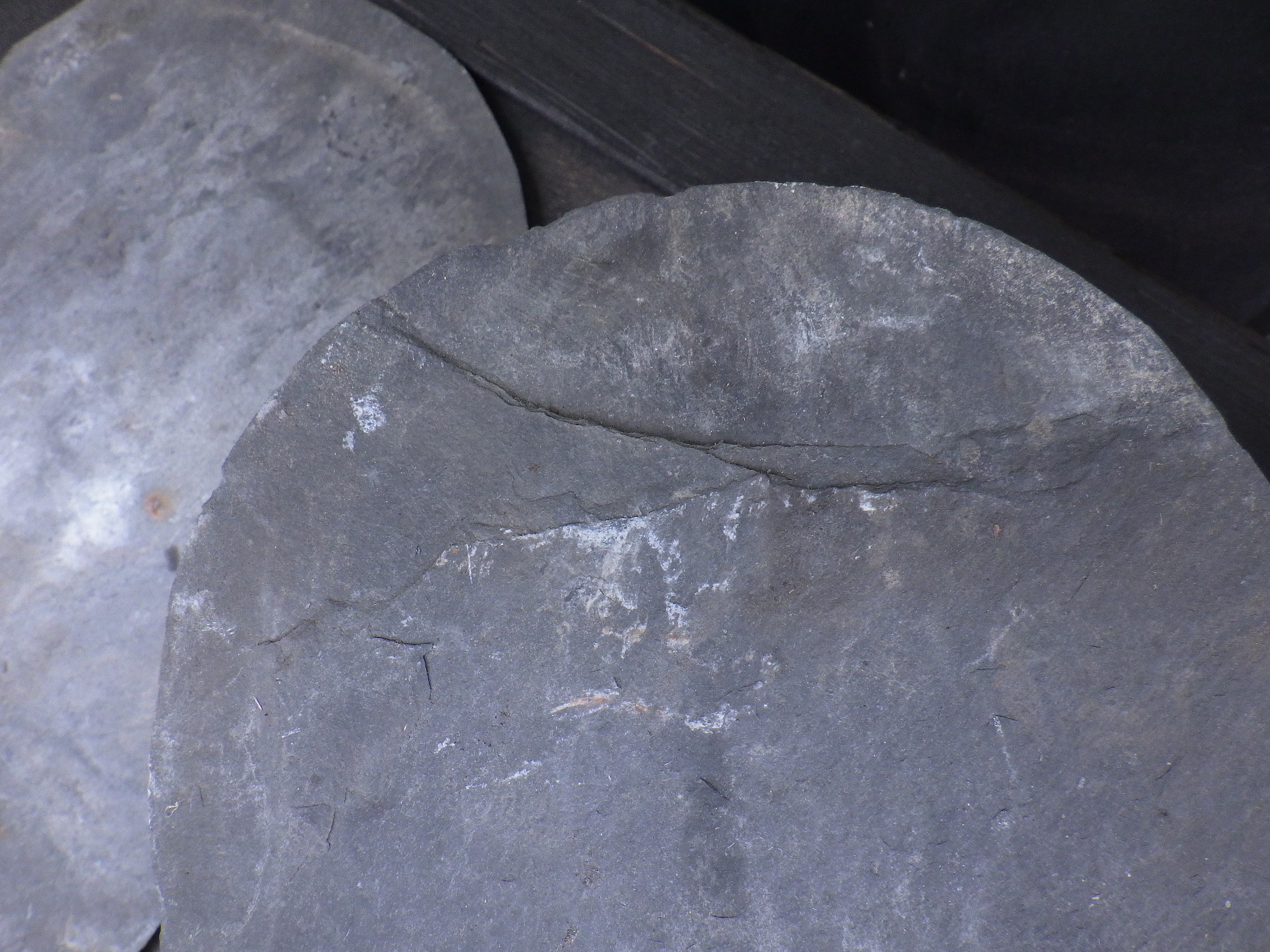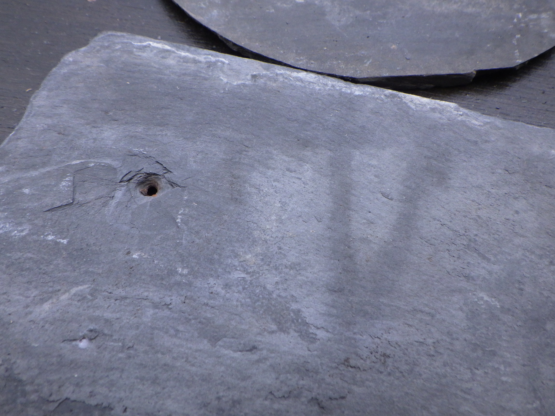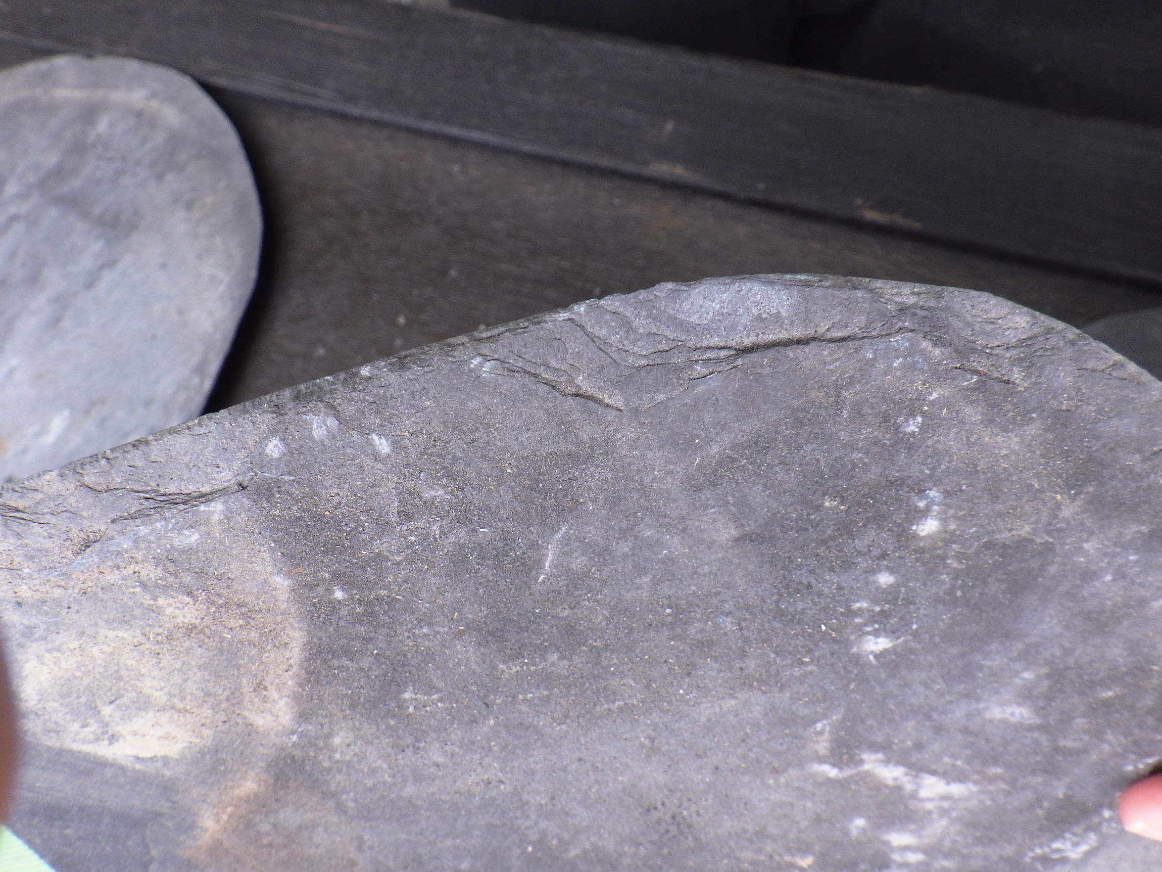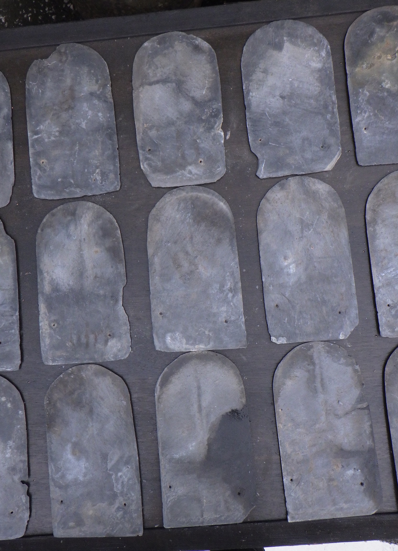 スレートの屋根です。重ねた形にあわせて屋根の跡が残っており、大変面白い素材です。在庫一杯ありますので、お問い合わせください。