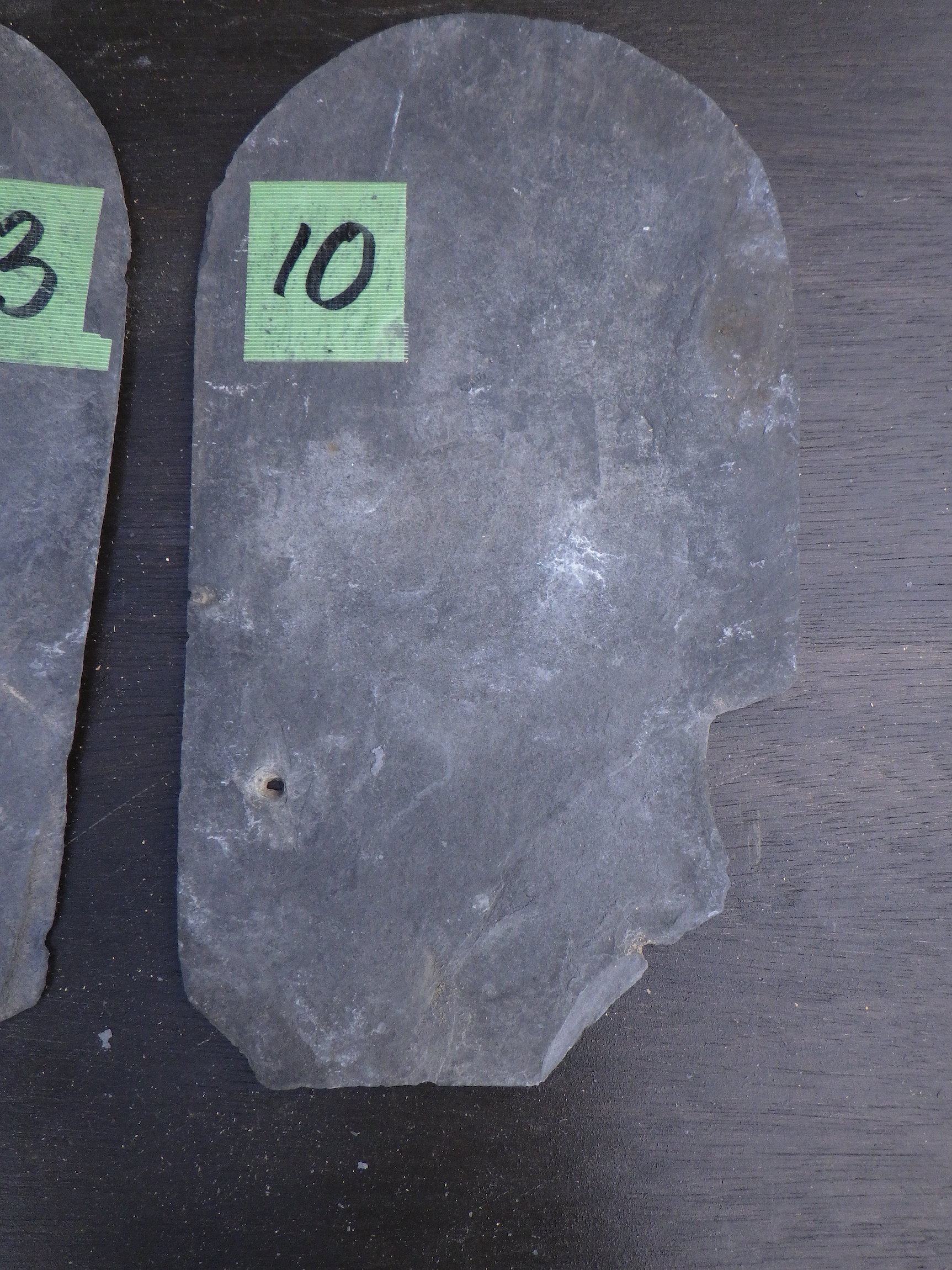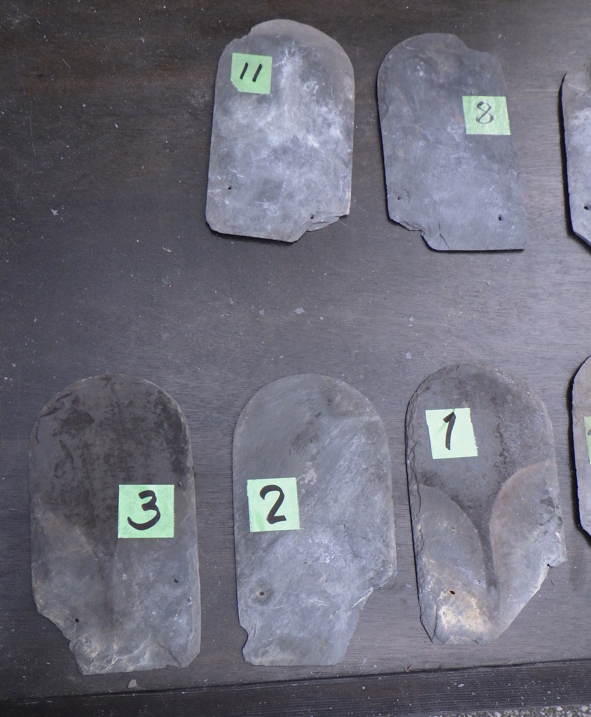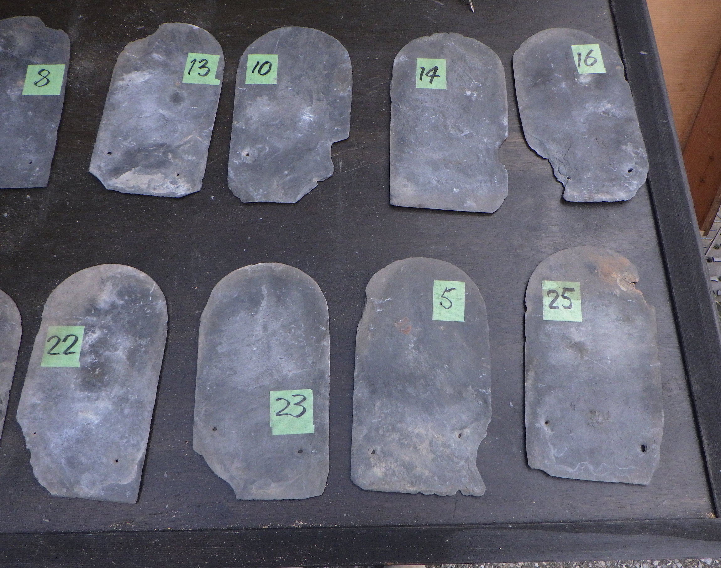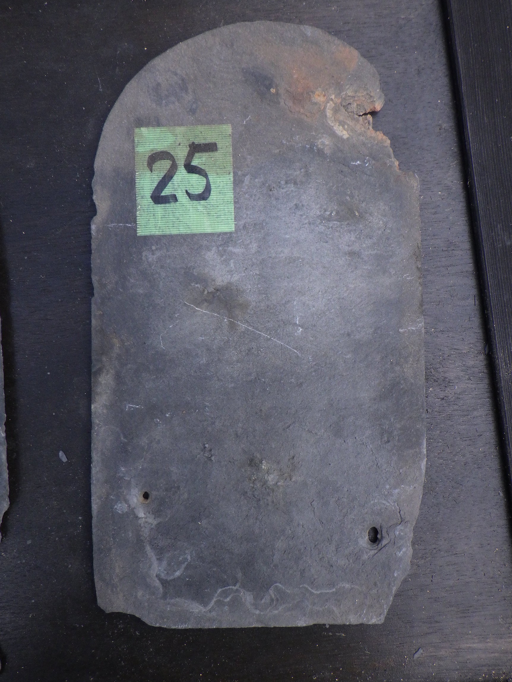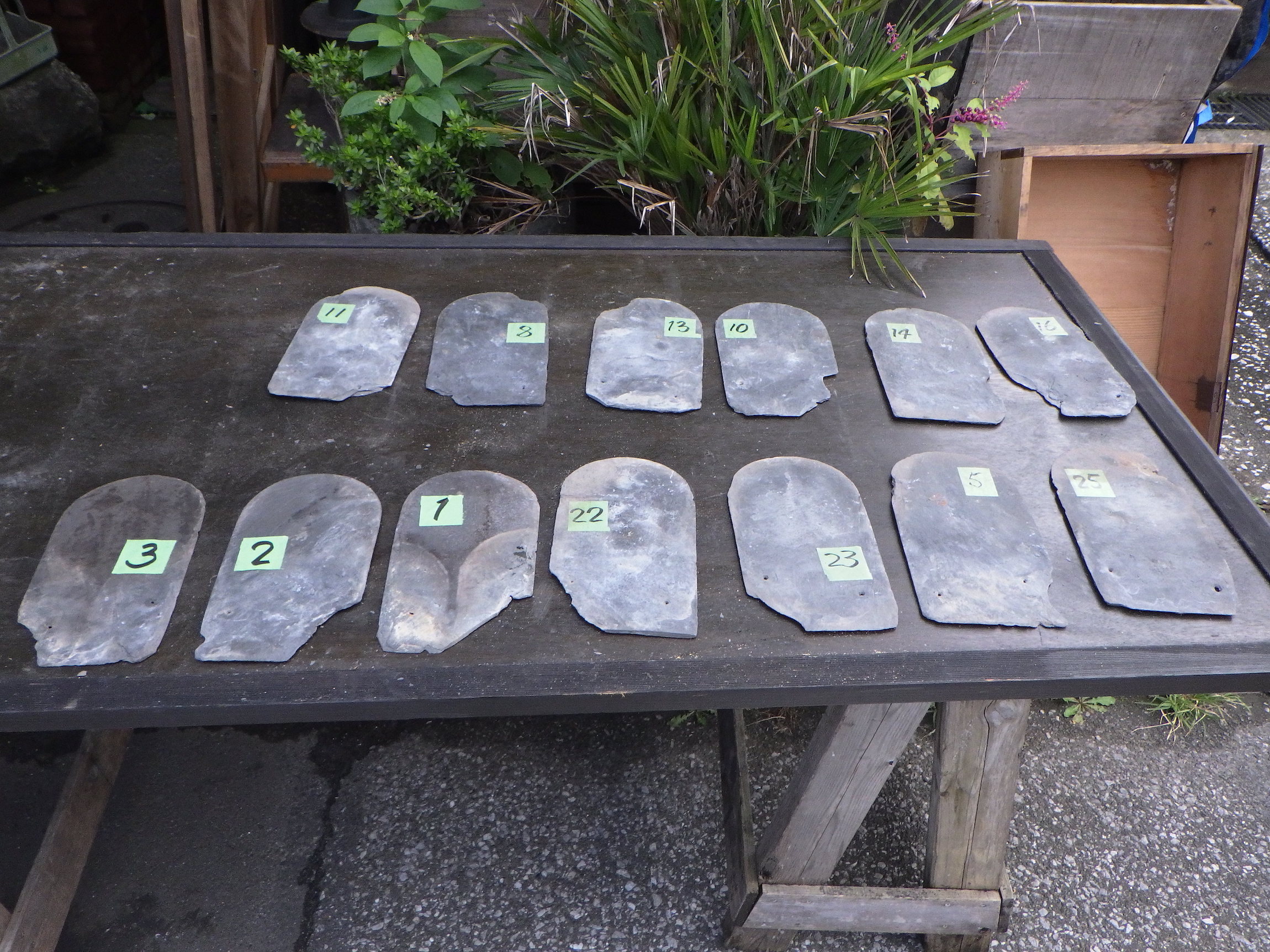 スレートの屋根です。重ねた形にあわせて屋根の跡が残っており、大変面白い素材です。