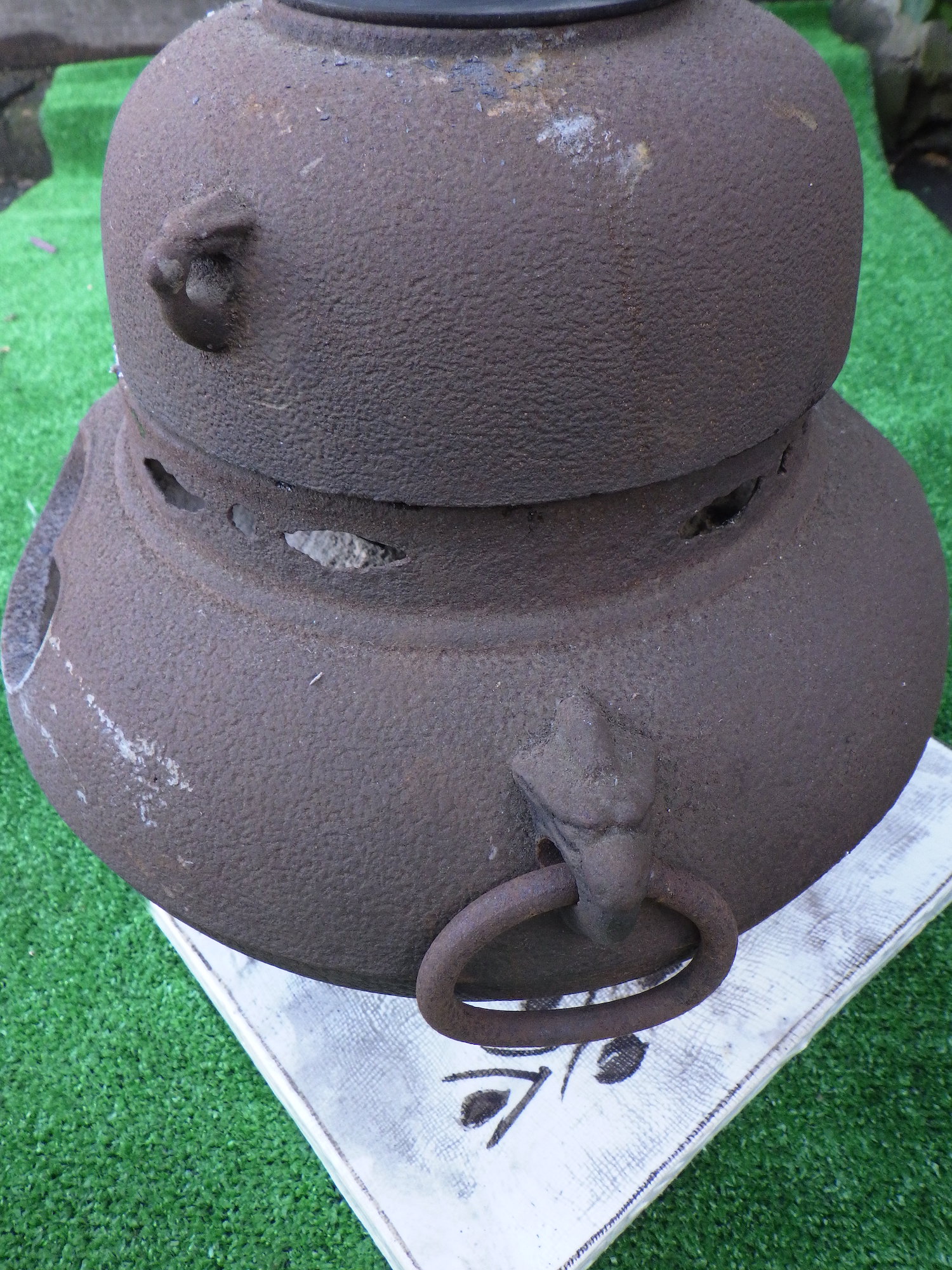 東京の荒川区から茅ヶ崎に移築された茶室で保管されていたものです。浅黄色の陶器製の台座もお付け致します。