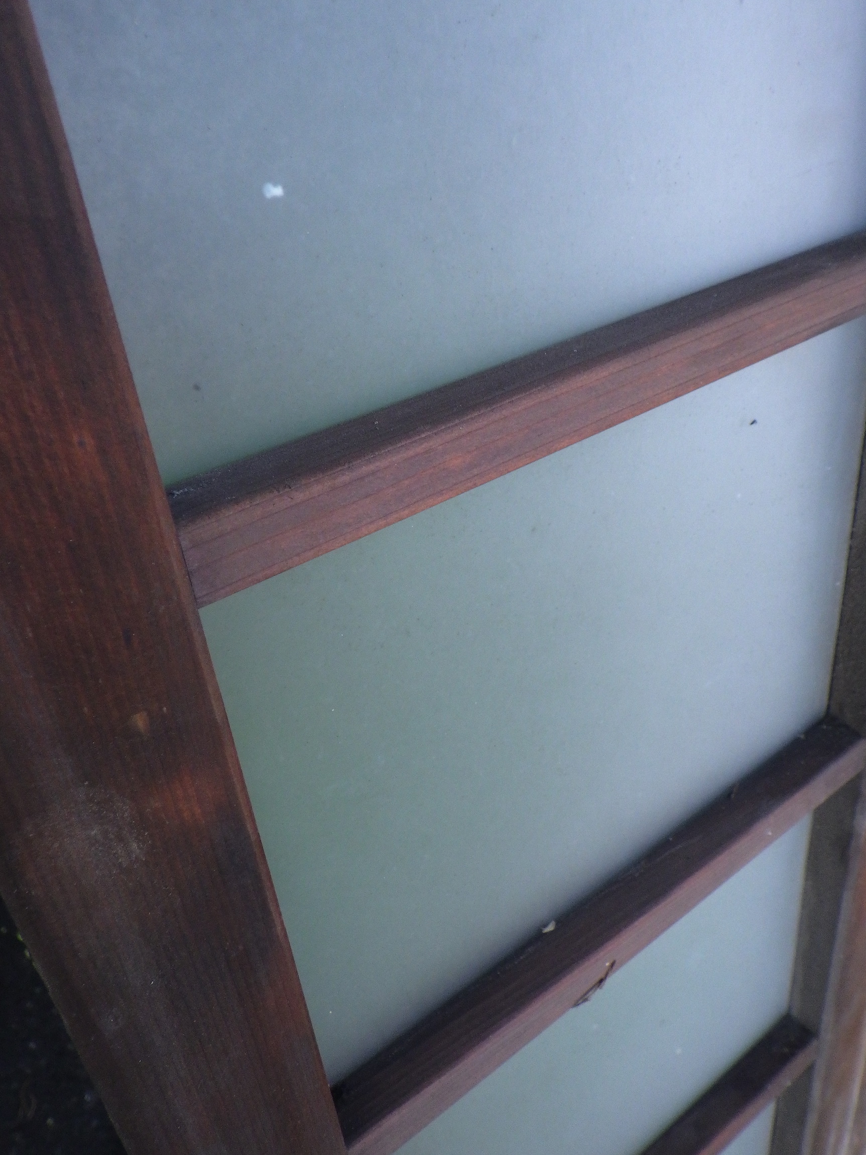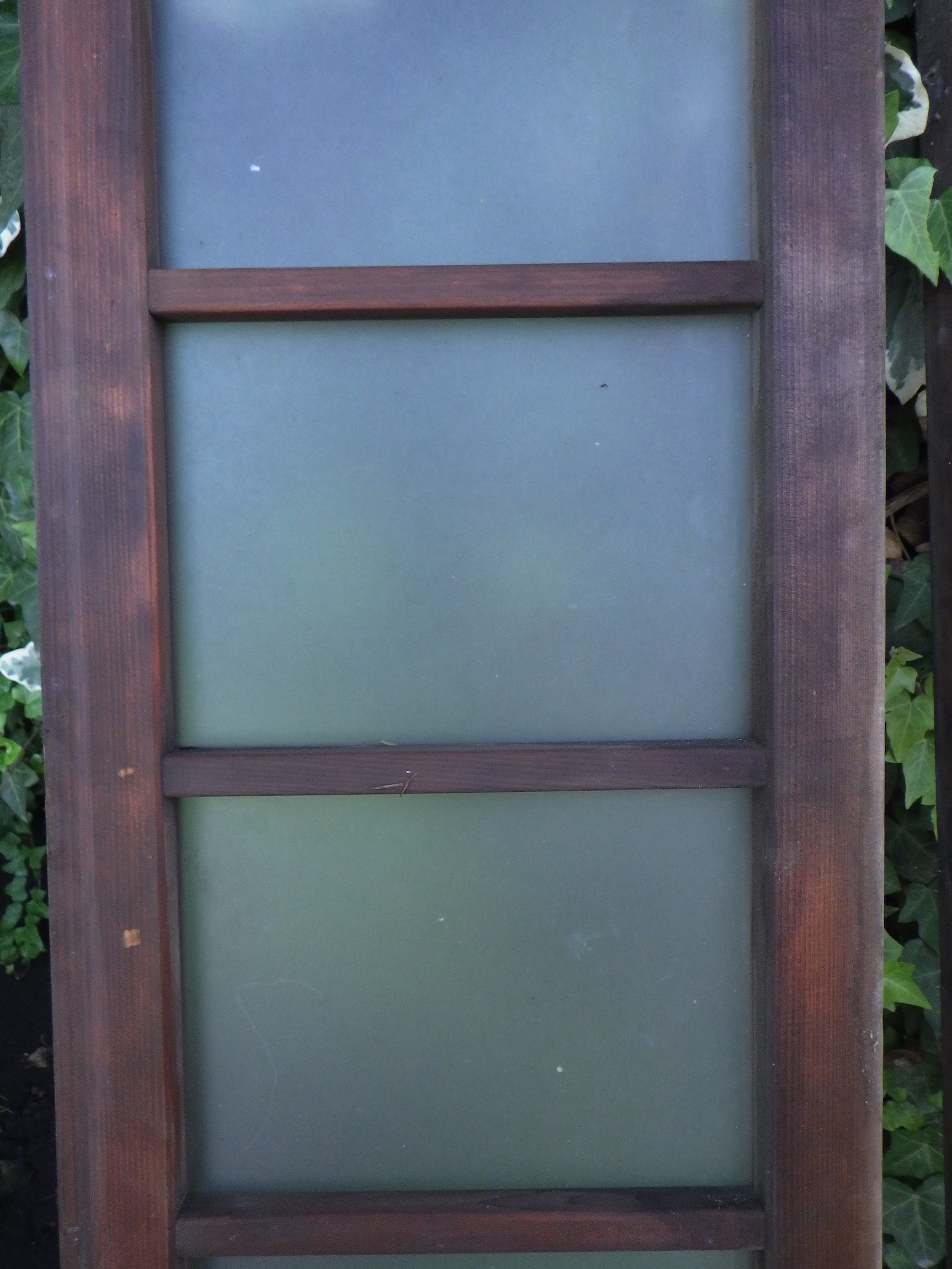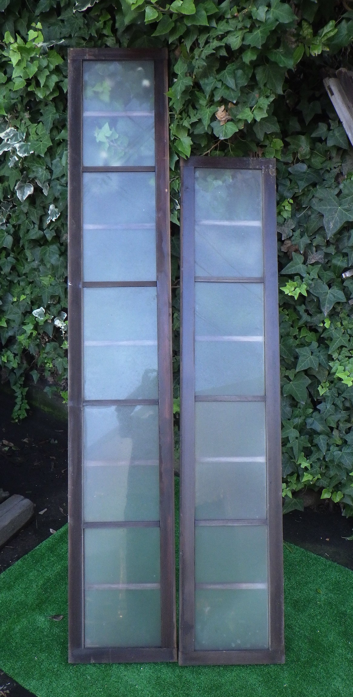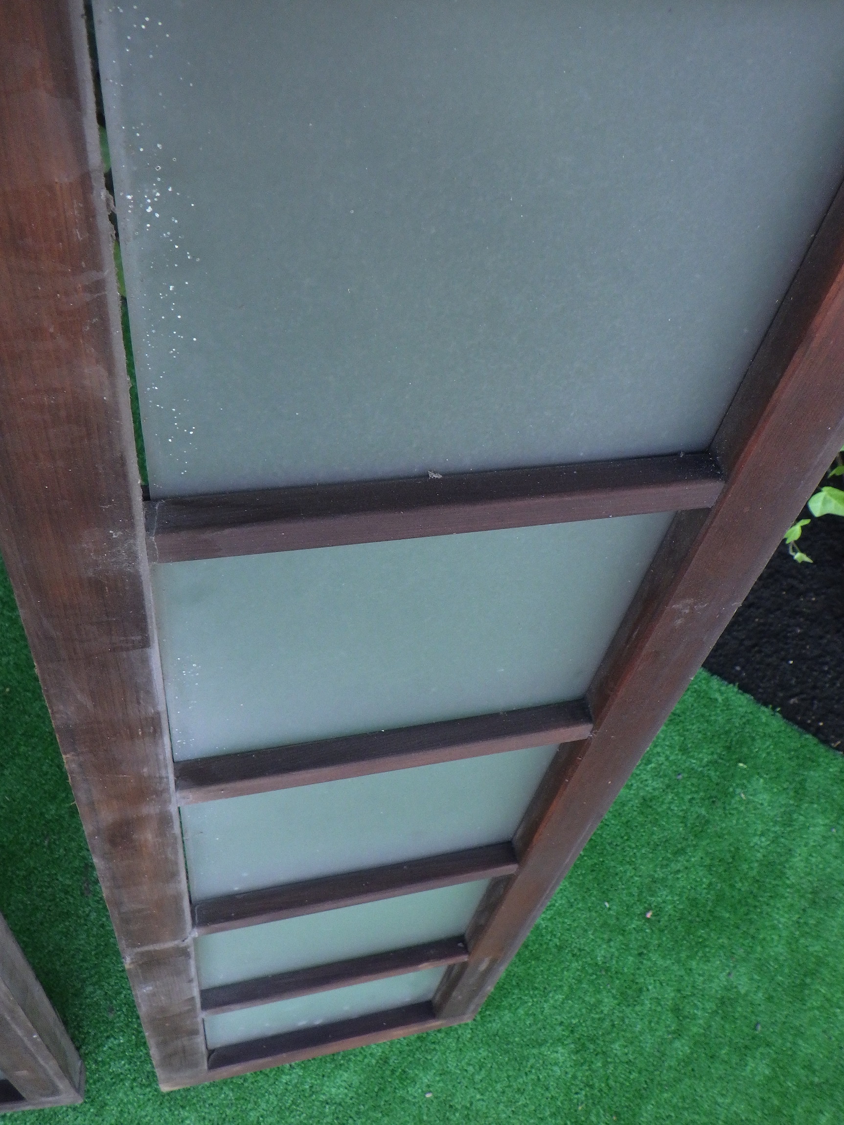 曇りガラスが使われています。285×1420×27のサイズが6点、290×1718×27のサイズのものが1点ございます。寸法は5mm程度の誤差があります。