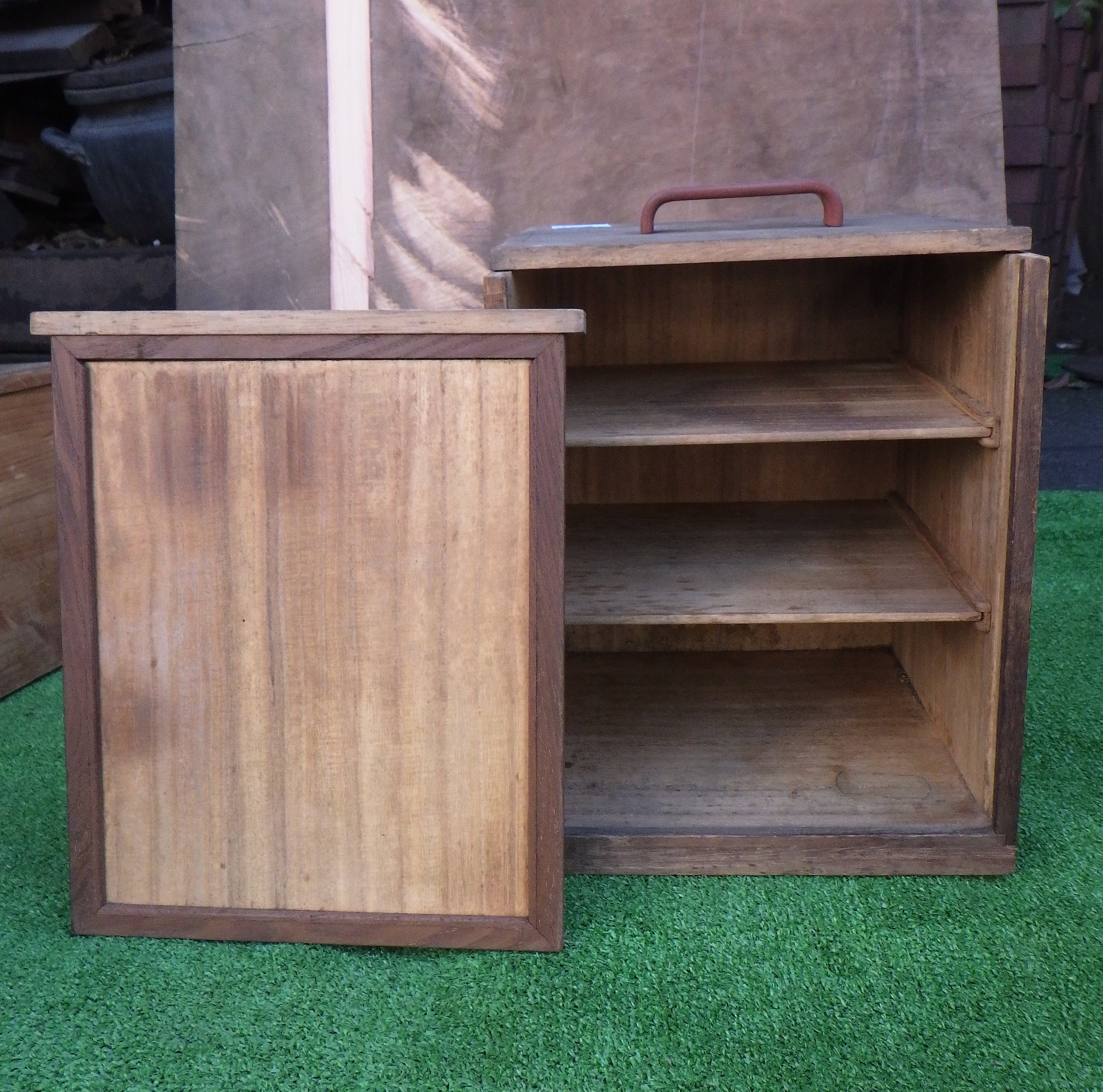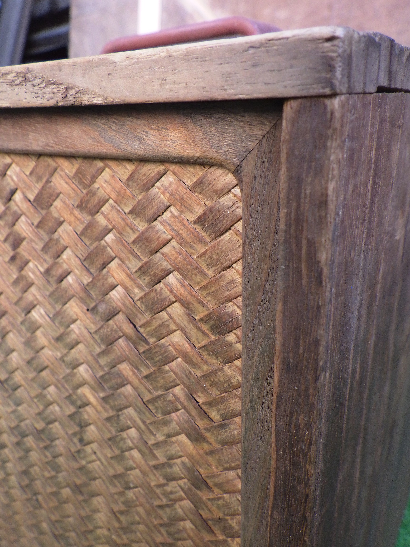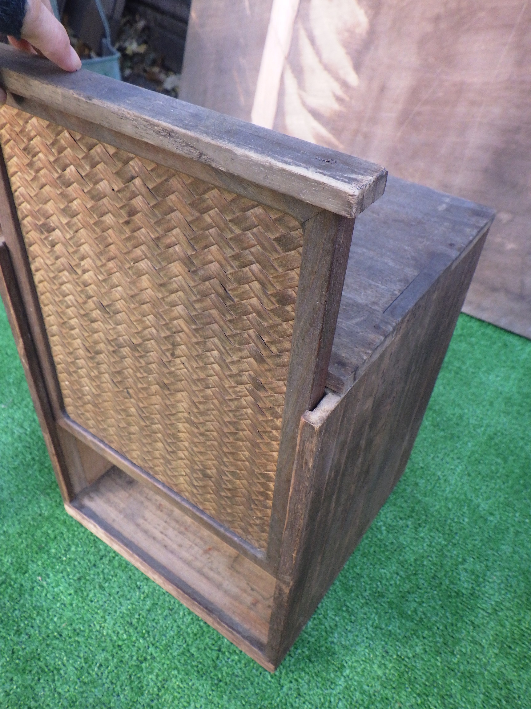おそらく出前用に使われていたと思われる取手付きの箱です。網代の部分があったりとインテリアとしても映えそうです。