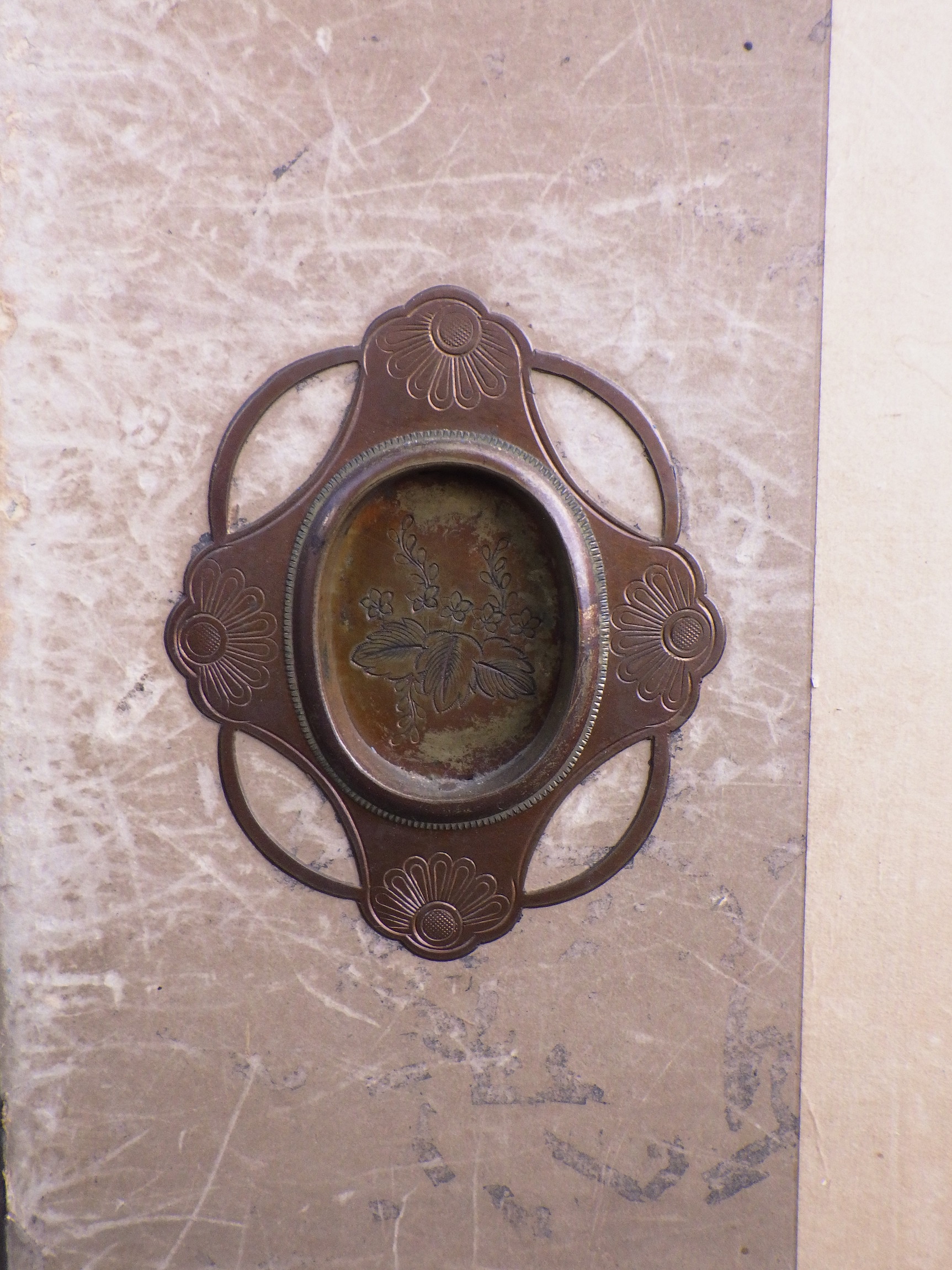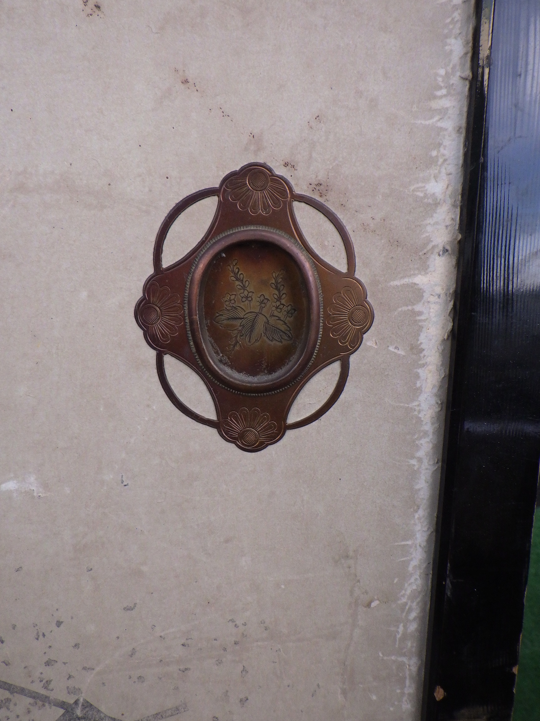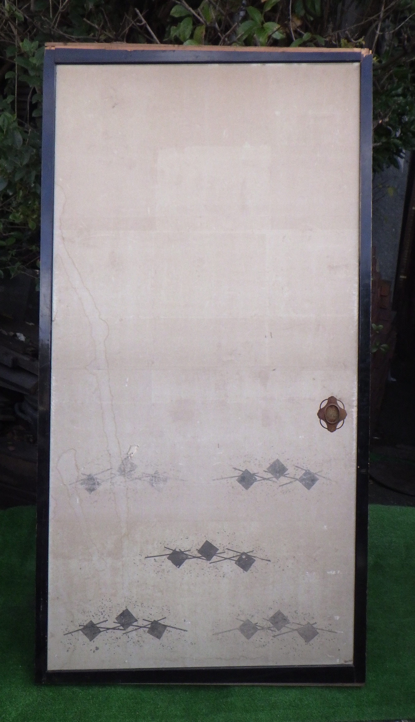 上部に高さを修繕した跡があります。上下で5mmほど傾きがあります。引き手がとても凝っていて魅力的です。