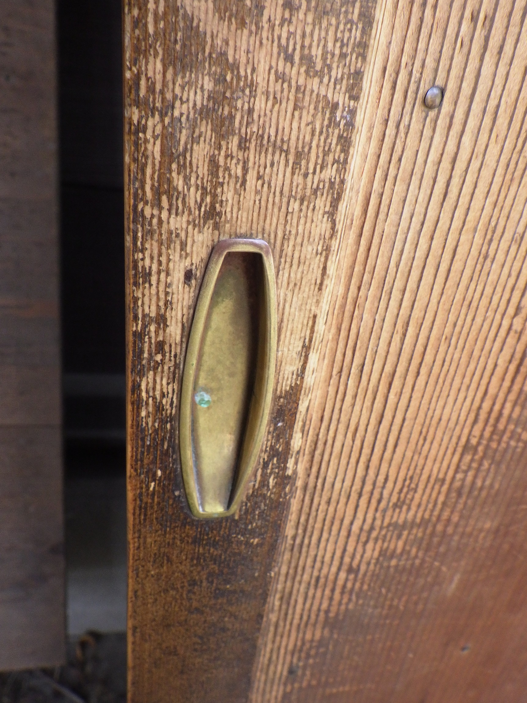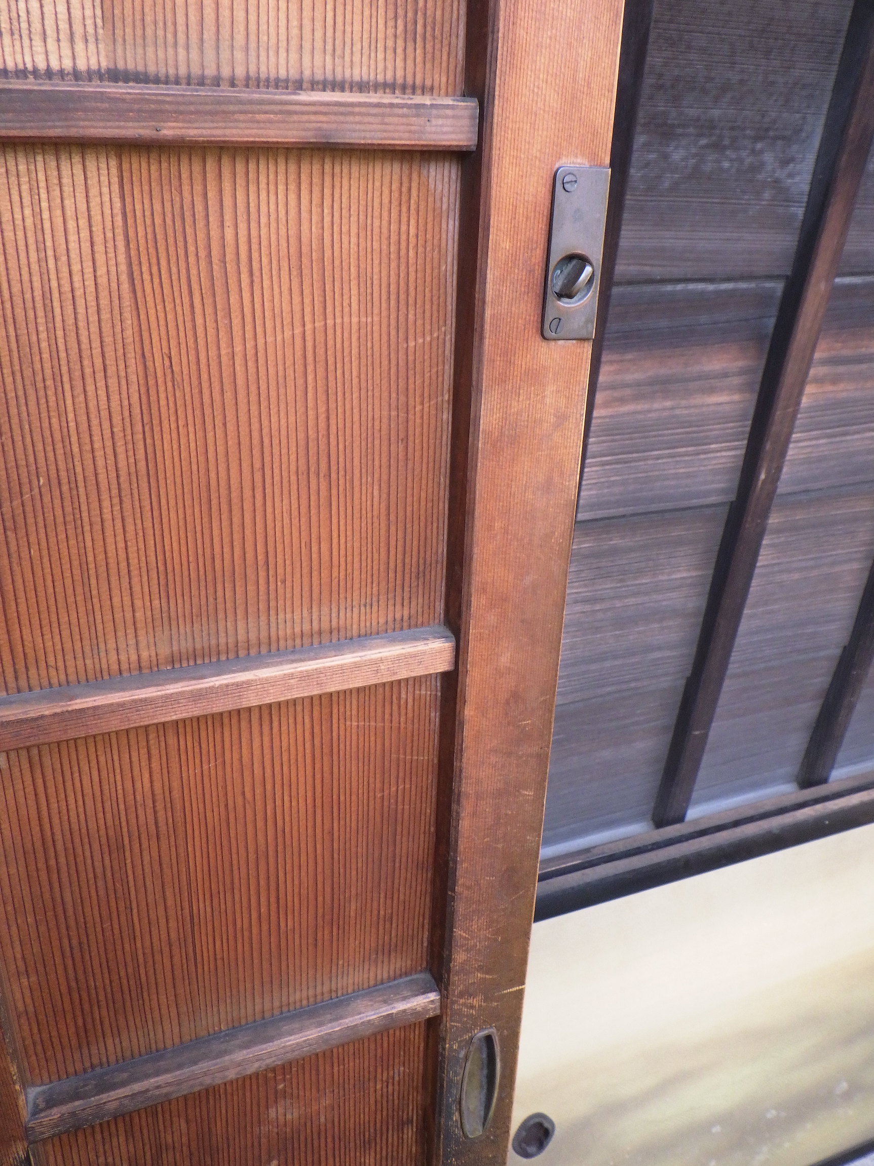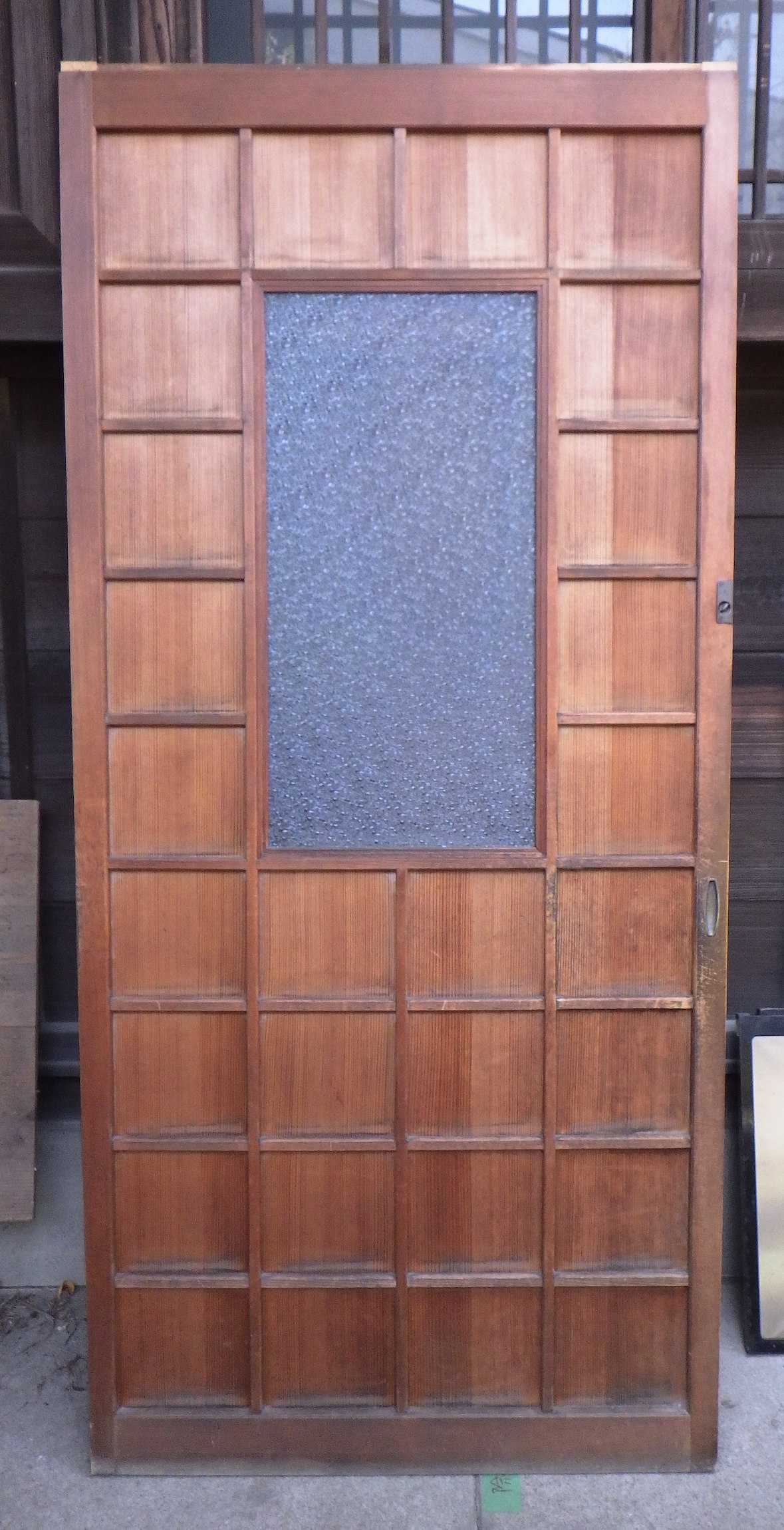 ダイヤガラスの窓がついた板戸です。大田区の民家の洗面所で使われていたものです。窓があるので、中に人がいるかどうかがわかるのが良いですね。