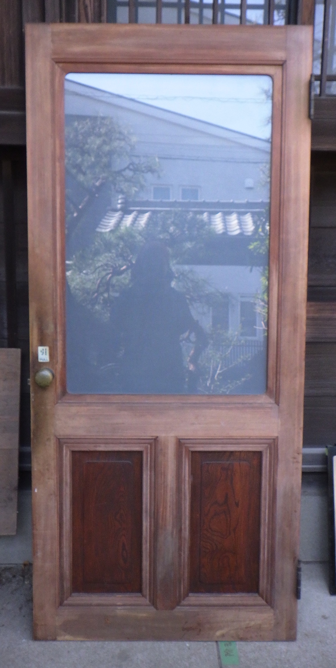 大田区の民家で使われていたものです。腰板は落ち着いた色味に枠は明るい色となっており、程よくシンプルなので使う場所を選びません。