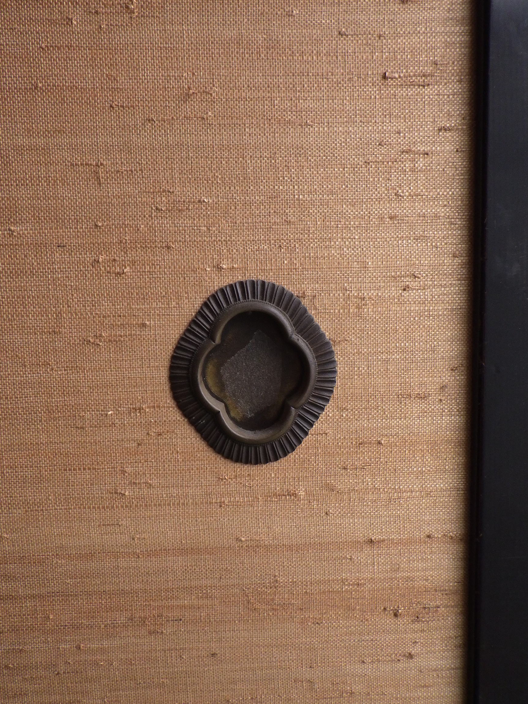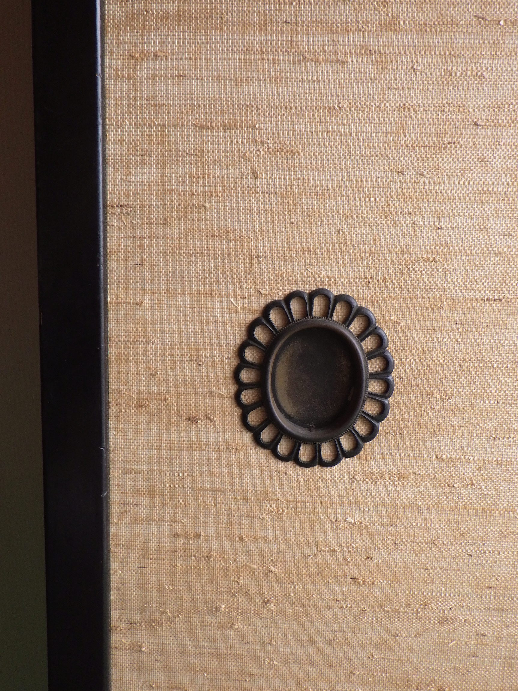 大田区の民家で使われていたものです。引き手のデザインが2種類あります。幅が795mmのほうの引き手は6枚目の花のようなデザインになっています。