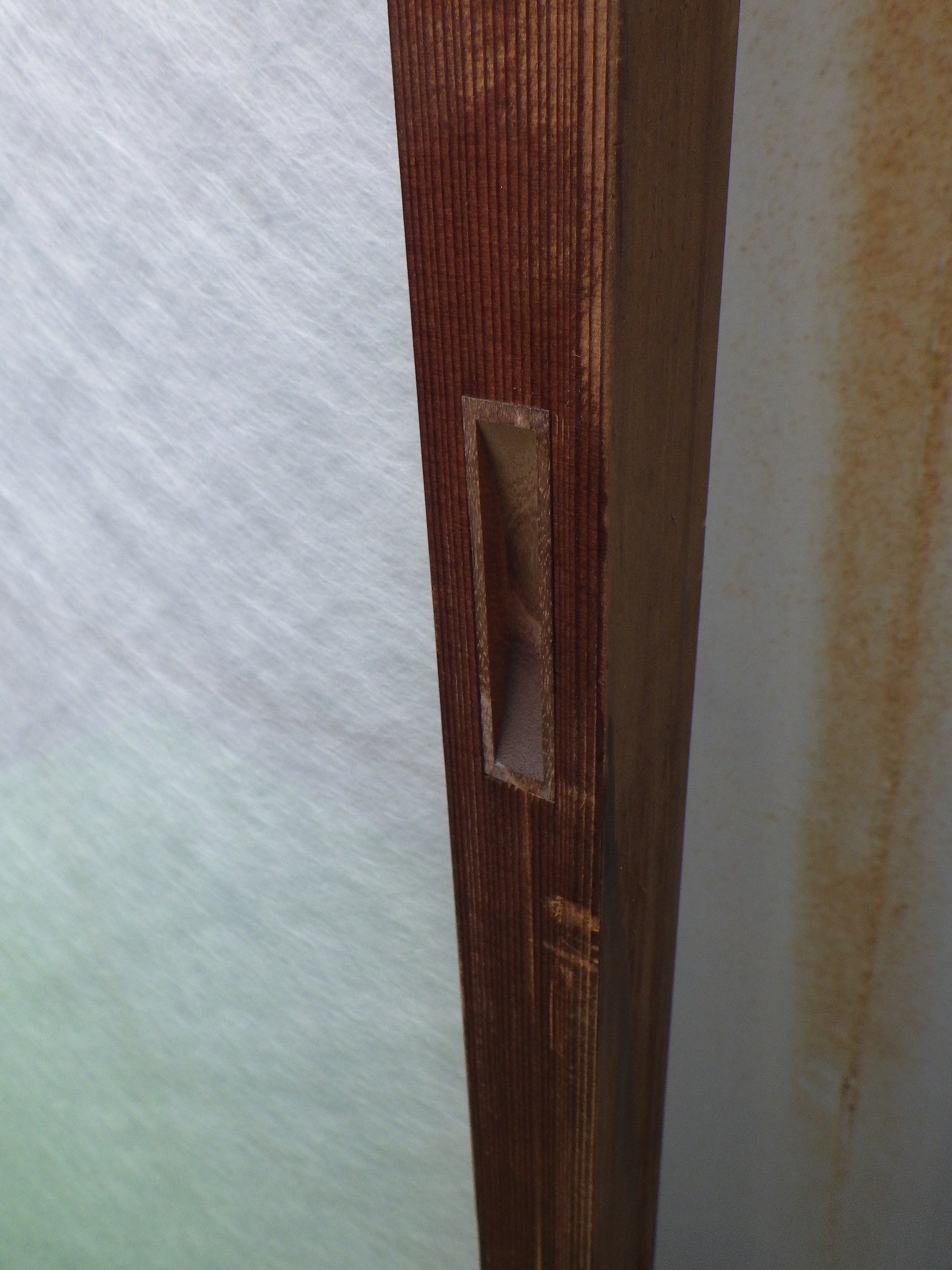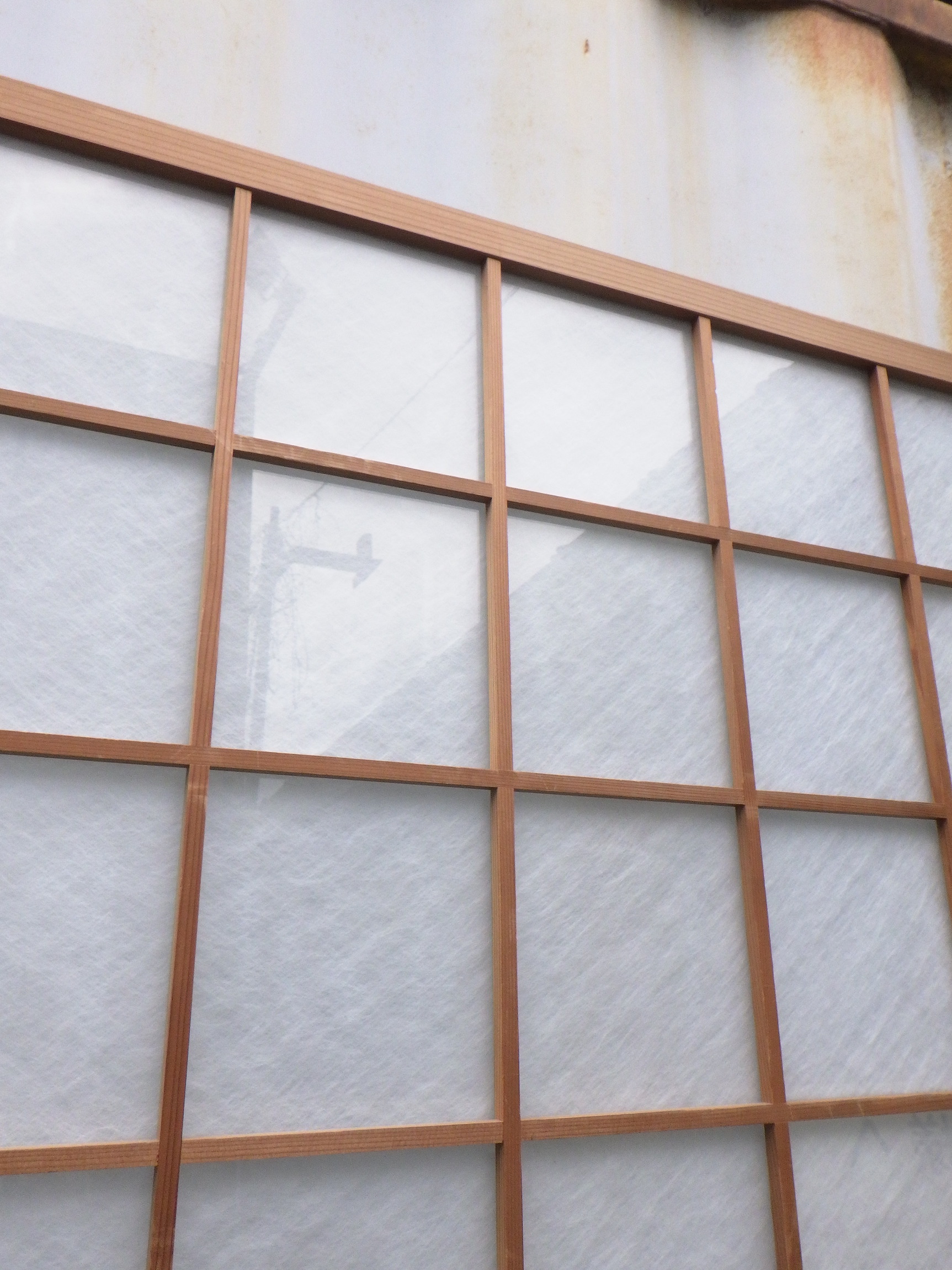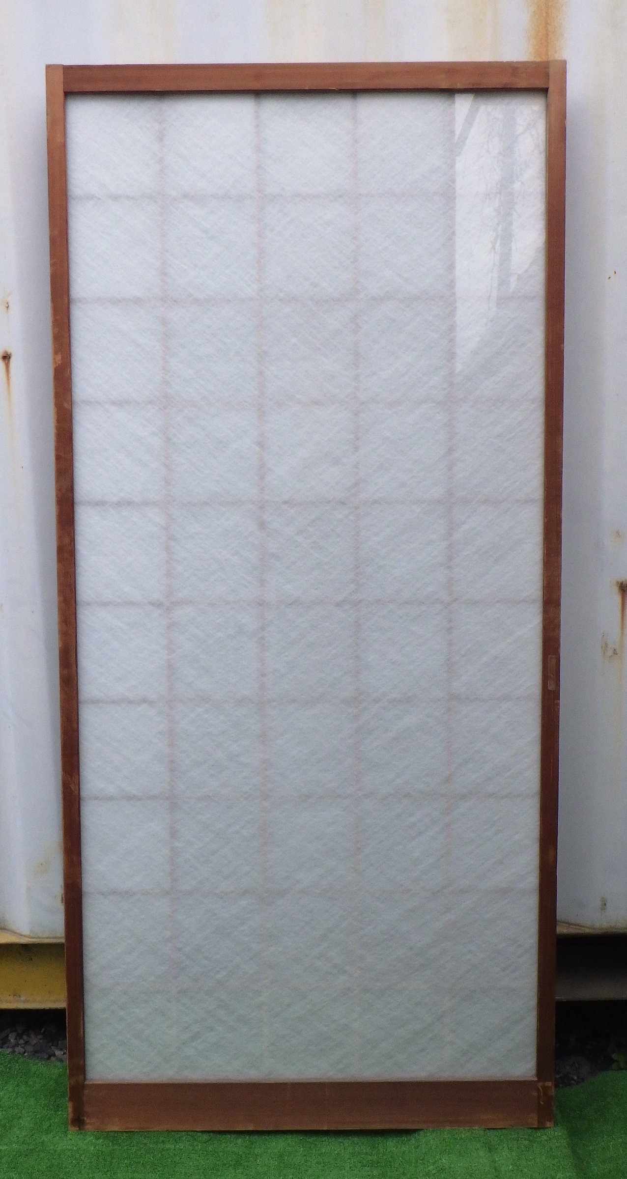 一見、障子戸のように見えますが、ガラスが使われています。裏面には格子がありません。ガラス会社からお引き取りした品物になります。