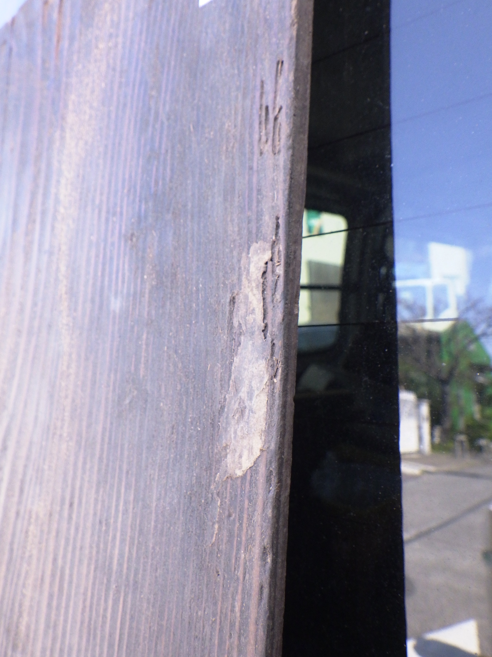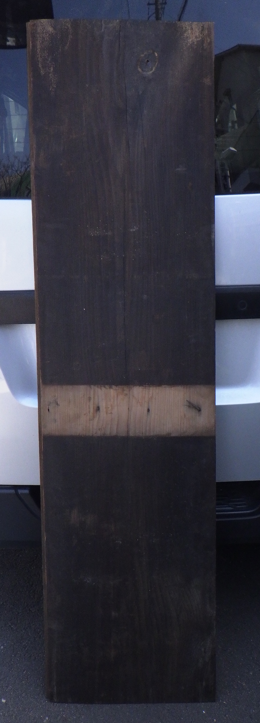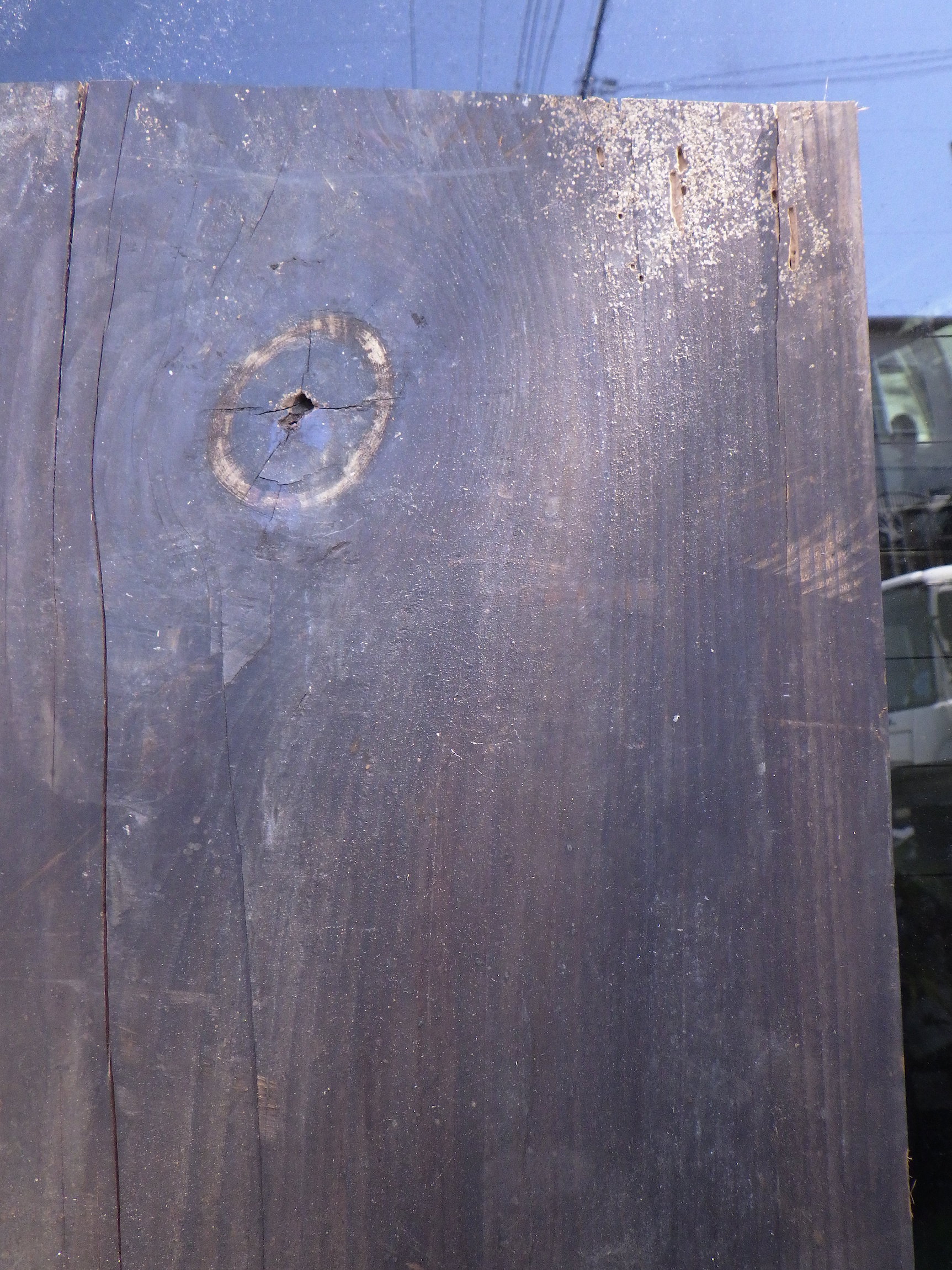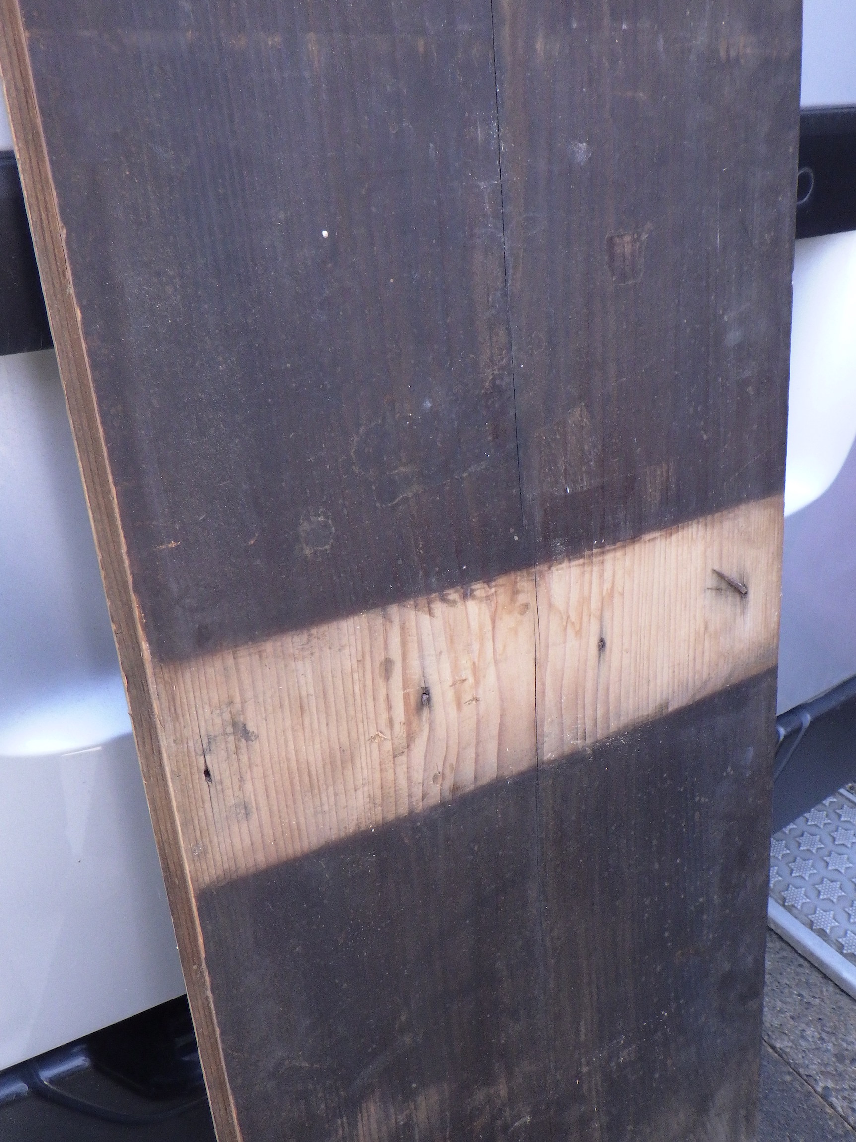 もみの板です。2階で使われていた床板で裏面の一部に色がついていない所があり、特有の味わいが出ています。