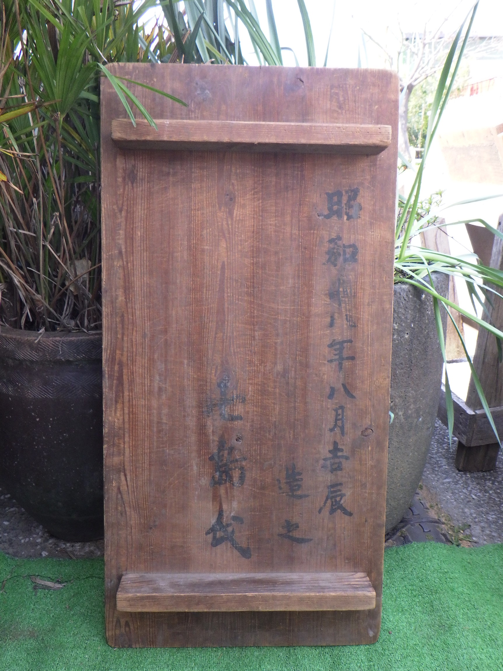 地下につながる床板として使われていたので蓋のような構造になっています。昭和18年の墨字が確認できます。