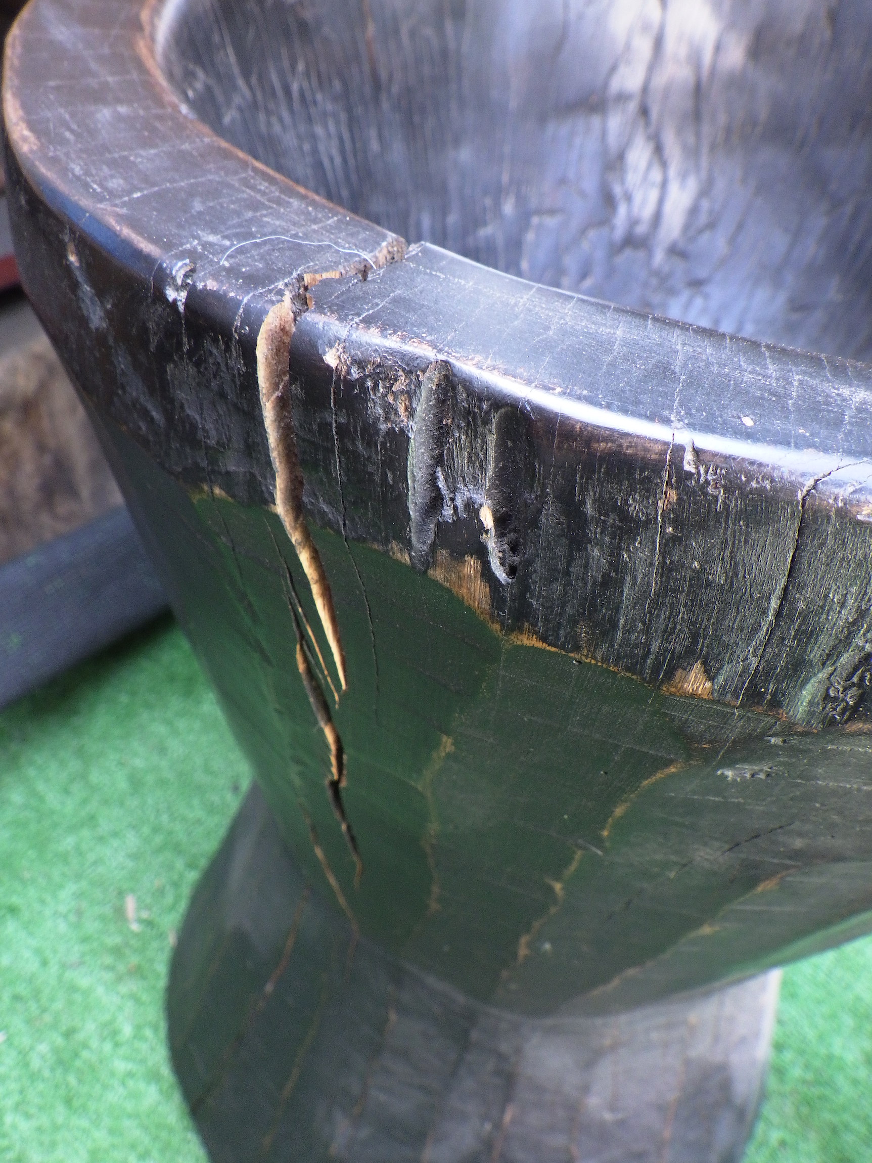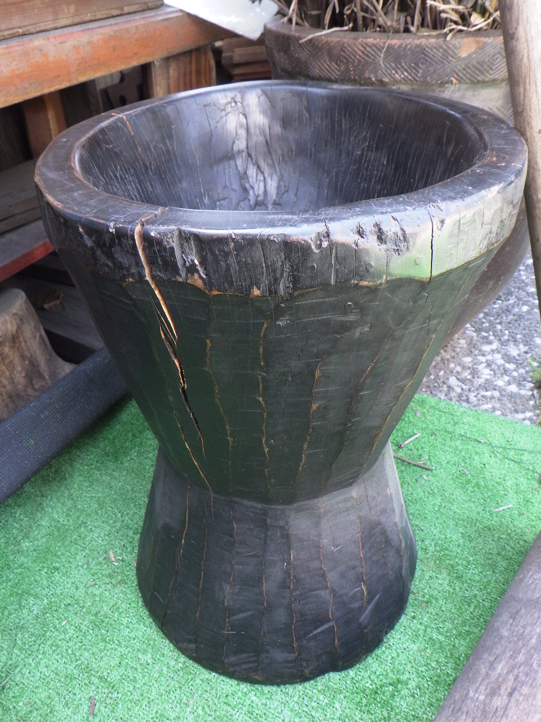 割れている箇所がありますが、人の手技を感じる独特の歪みが味わい深い一品。ご購入の際は、杵もおまけでお付けいたします。